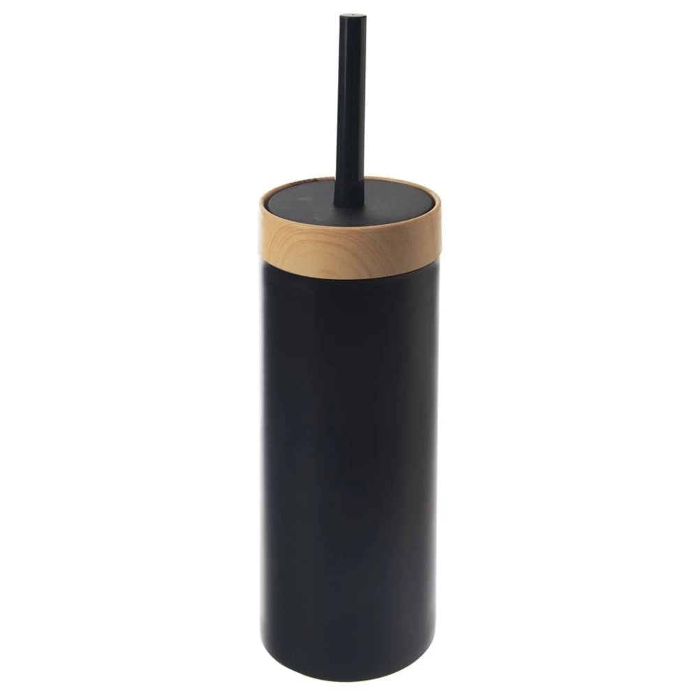 - WYTRZYMAŁA - Pojemnik, pokrywka oraz szczotka wykonane z wysokiej jakości tworzywa w kolorze czarnym. Pojemnik posiada wykończenie imitujące drewno.