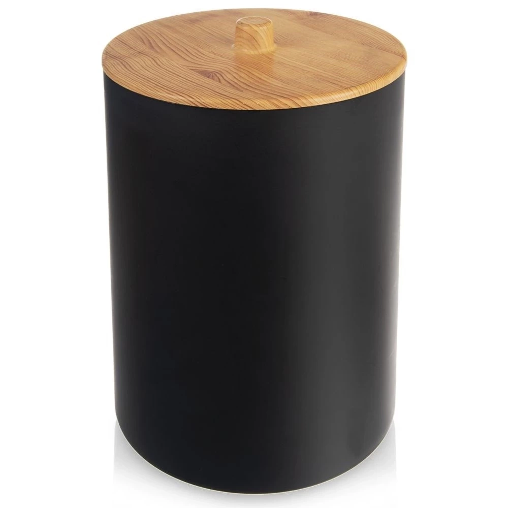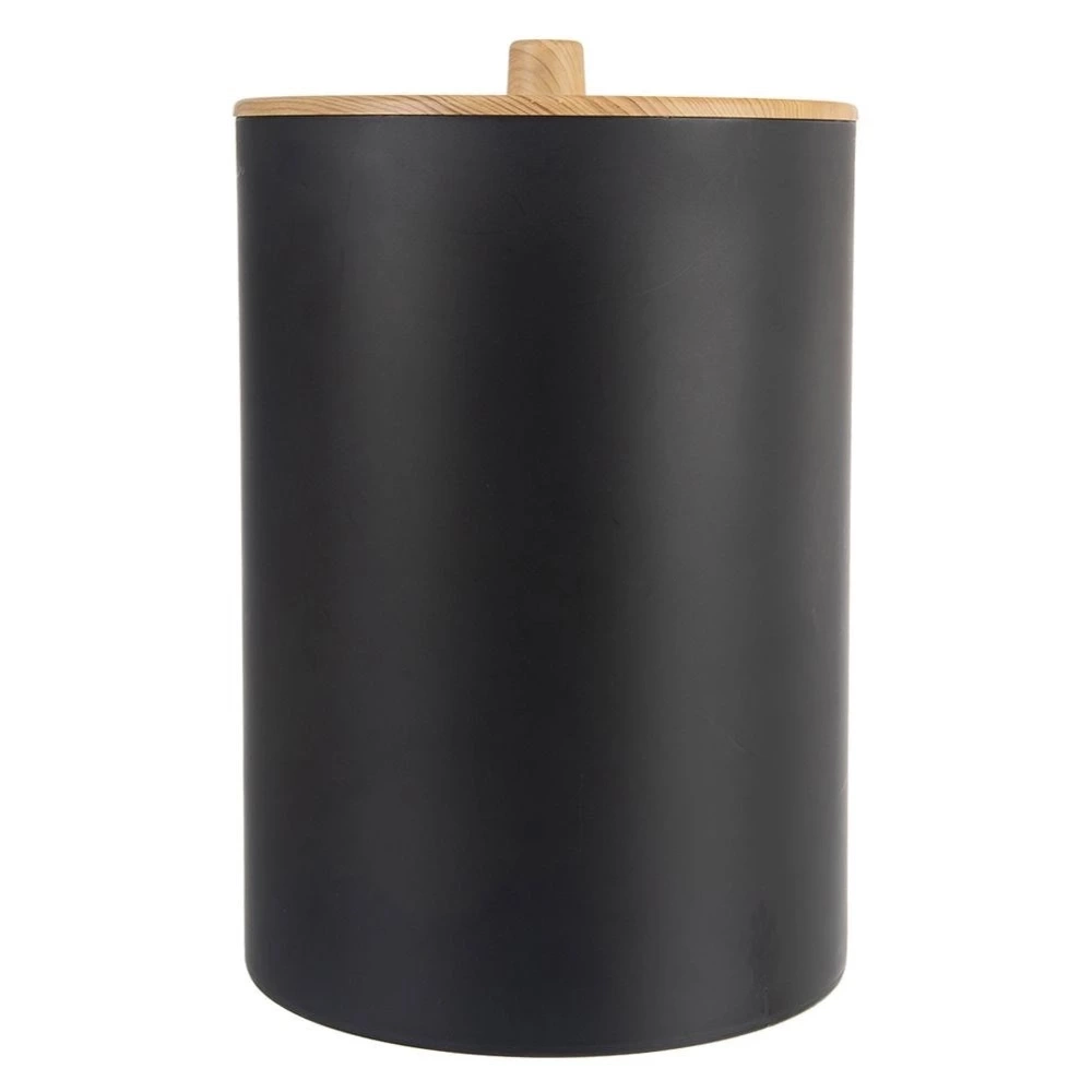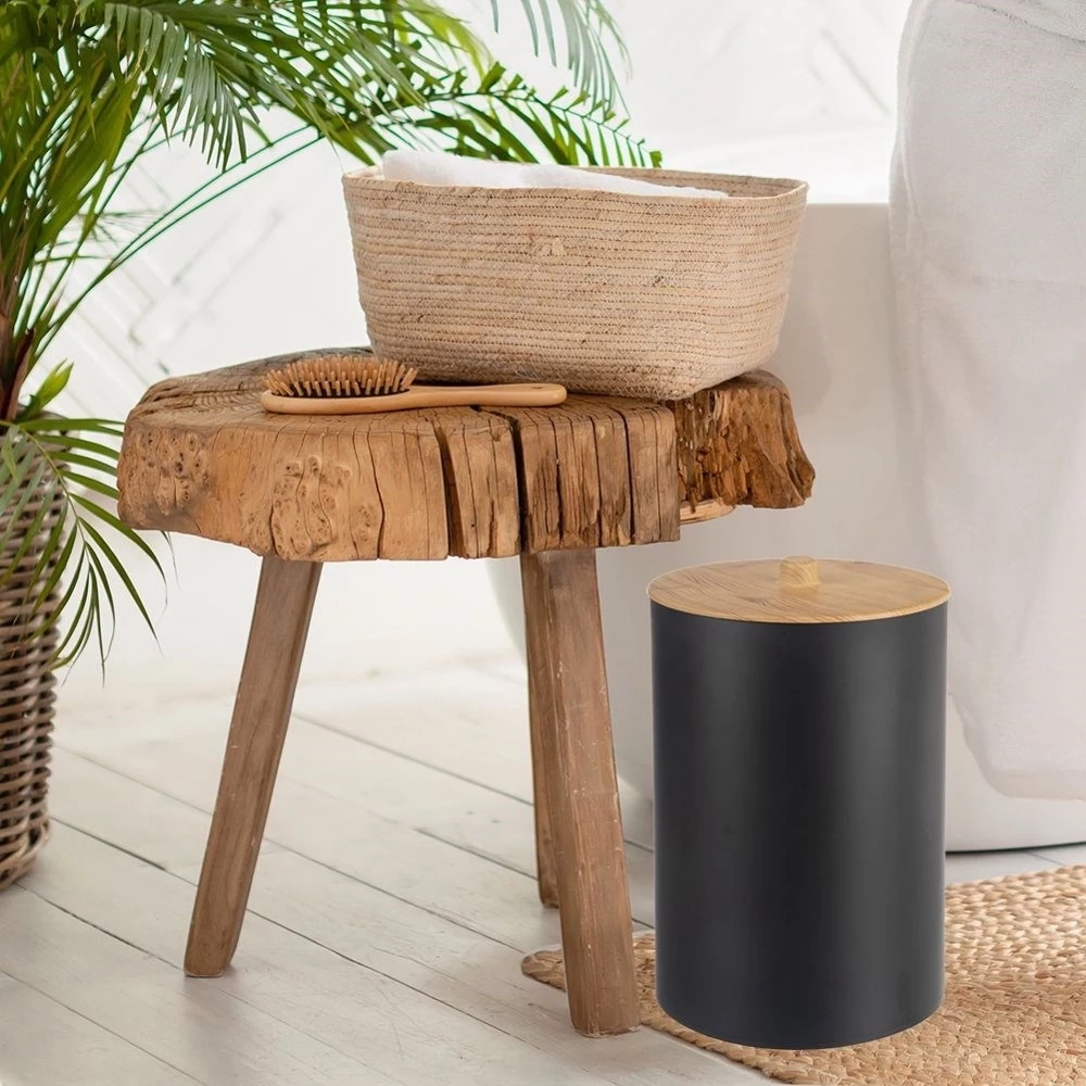 - Łazienkowy kosz na śmieci o pojemności 7 litrów. Wykonany z tworzywa w czarnym kolorze. Posiada pokrywkę, która zapobiegnie uwalnianiu się nieprzyjemnych zapachów.