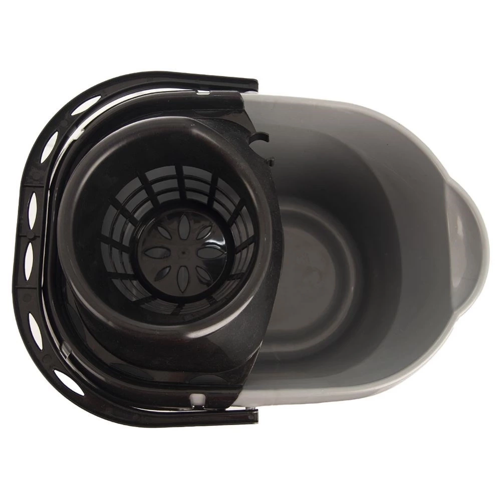 - WYTRZYMAŁY - Wykonane z najwyższej jakości tworzywa w kolorze szarym, uchwyt i nakładka do wyciskania mopa w czarnym kolorze.
