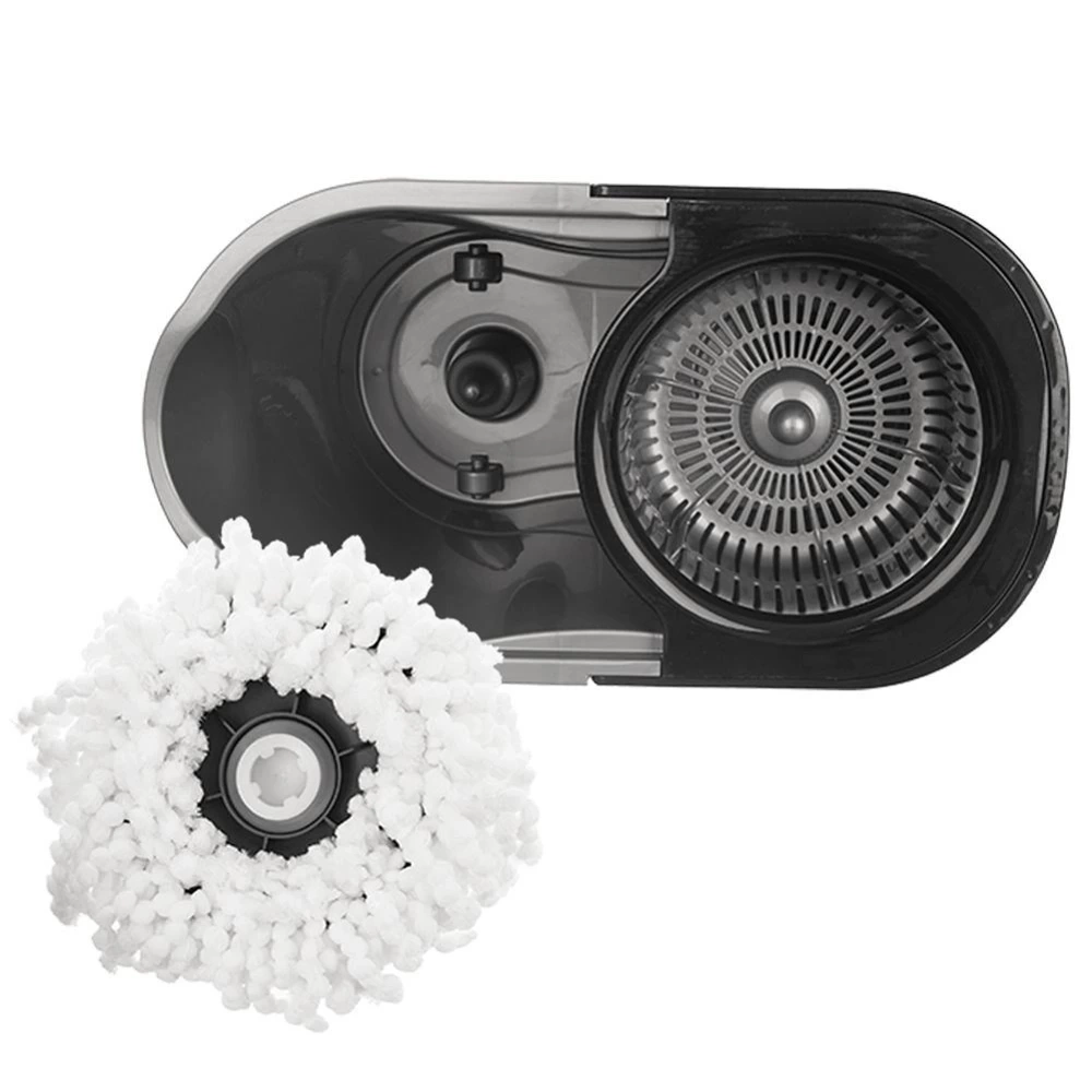 - OBROTOWY - Mop posiada obrotową końcówkę myjącą, która pozwoli dotrzeć do najbardziej niedostępnych miejsc, np. pod meblami. Wiadro wyposażone jest w wyciskacz obrotowy, który pozwala na dokładne wyciśnięcie mopa bez rozlewania wody.