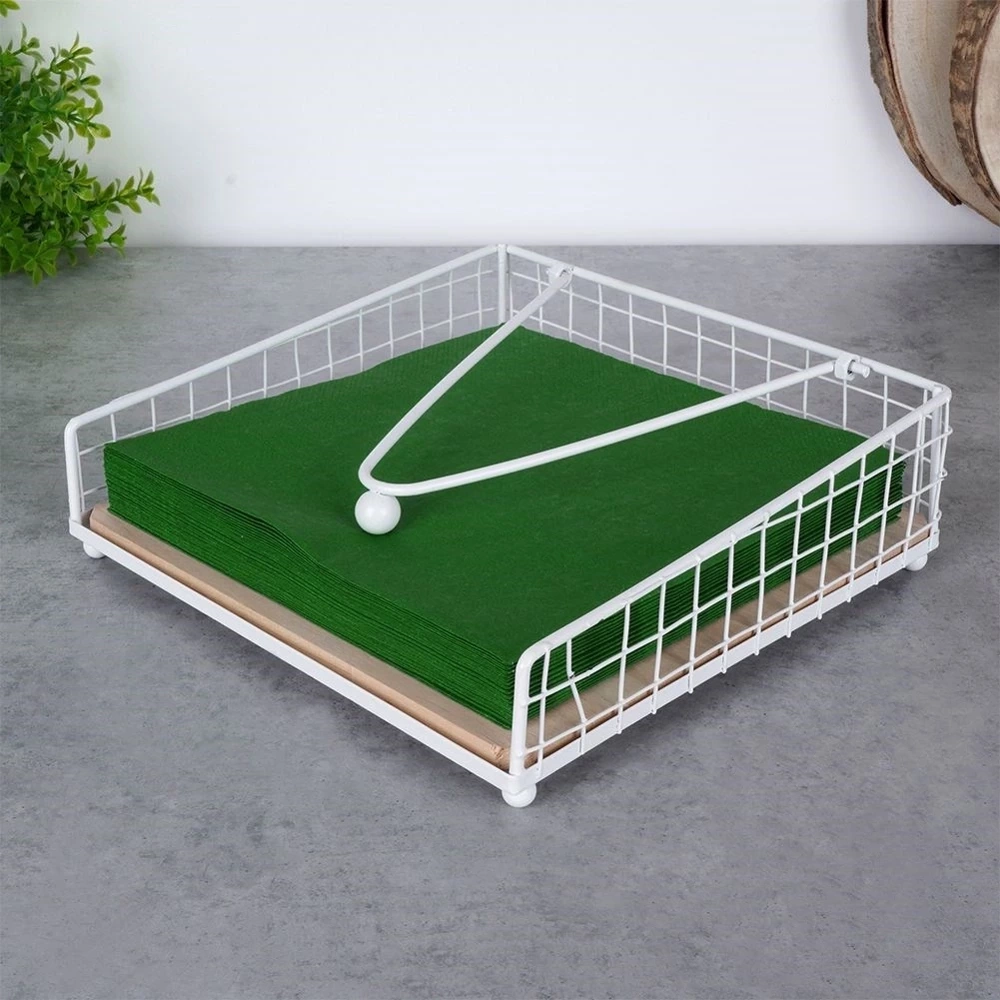 - PRAKTYCZNY - Stojak na serwetki w formie wygodnego podajnika. Stojak ma wymiary 18,5 x 18,5 x 5,5 cm.