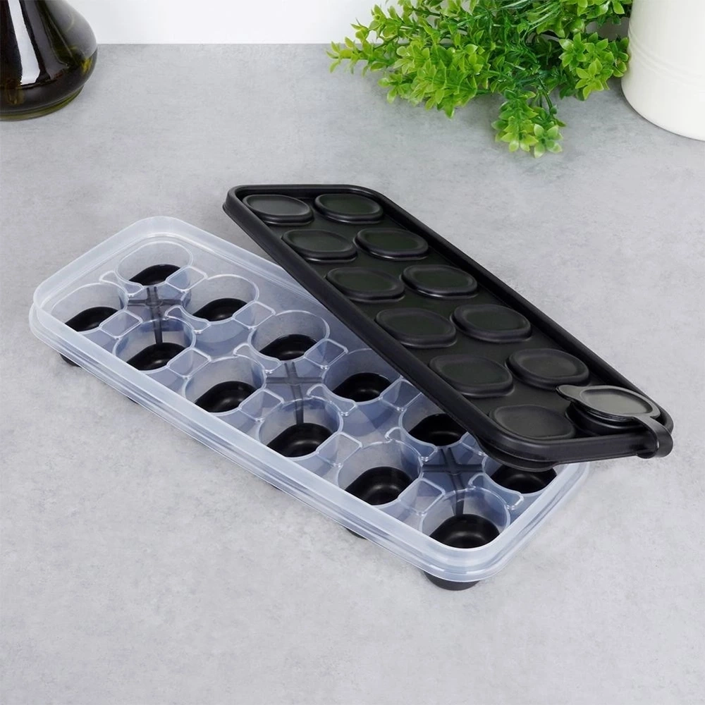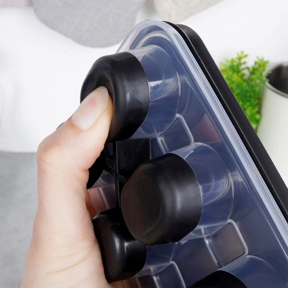 - BEZPIECZNA - Forma na lód wykonana jest z wysokiej jakości tworzywa, pokrywka i silikonowa podstawa w czarnym kolorze. Użyte materiały są bezpieczne dla zdrowia i neutralne dla żywności.