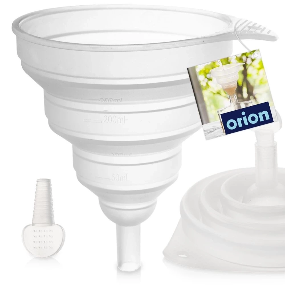 Składany lejek kuchenny z zatyczką i miarką. Niezwykle praktyczny i wytrzymały. Łatwy w użytkowaniu i czyszczeniu. Sprawdzi się w każdej kuchni. Dzięki niemu napełnianie butelek, szklanek i pojemników jest niezwykle proste. Przydatny podczas przelewania napojów. Sprawdzi się także jako miarka do odmierzania produktów. Oryginalny produkt czeskiej marki Orion. Wyprodukowano zgodnie z europejskimi standardami.