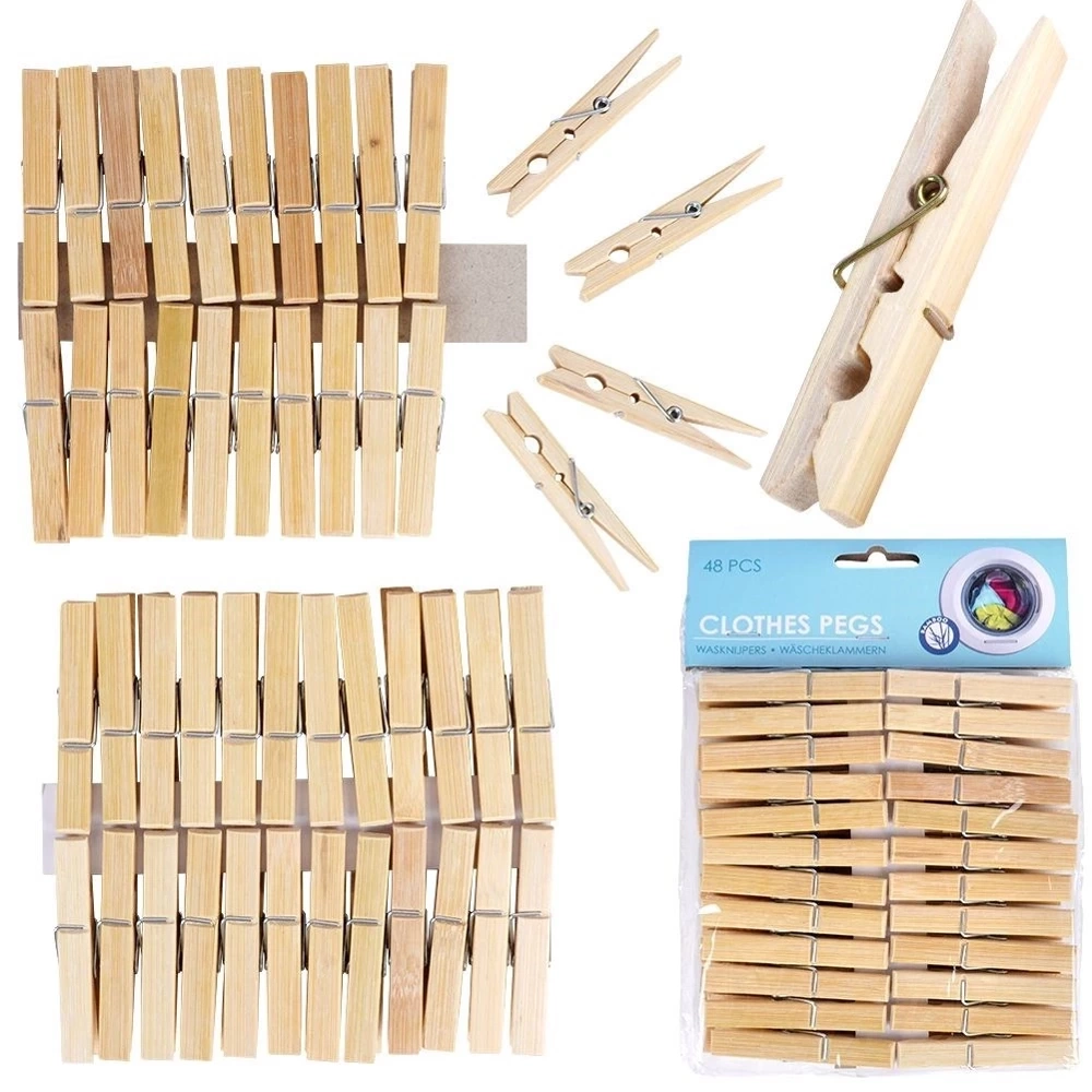 - Komplet 48 sztuk bambusowych klamerek na pranie. Mocne i wytrzymałe, utrzymają zarówno lekkie, jak i cięższe ubrania. Sprawdzą się zarówno w domu, jak i ogrodzie.