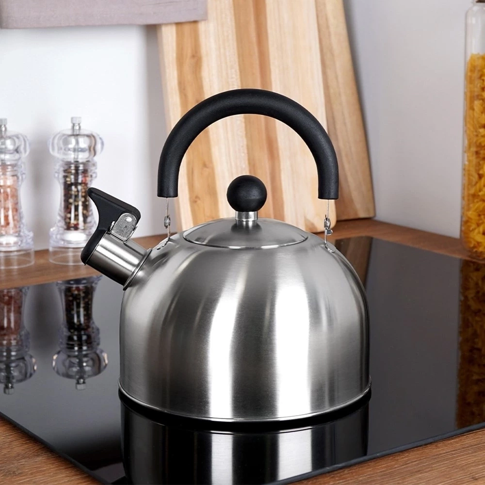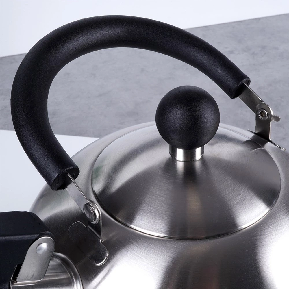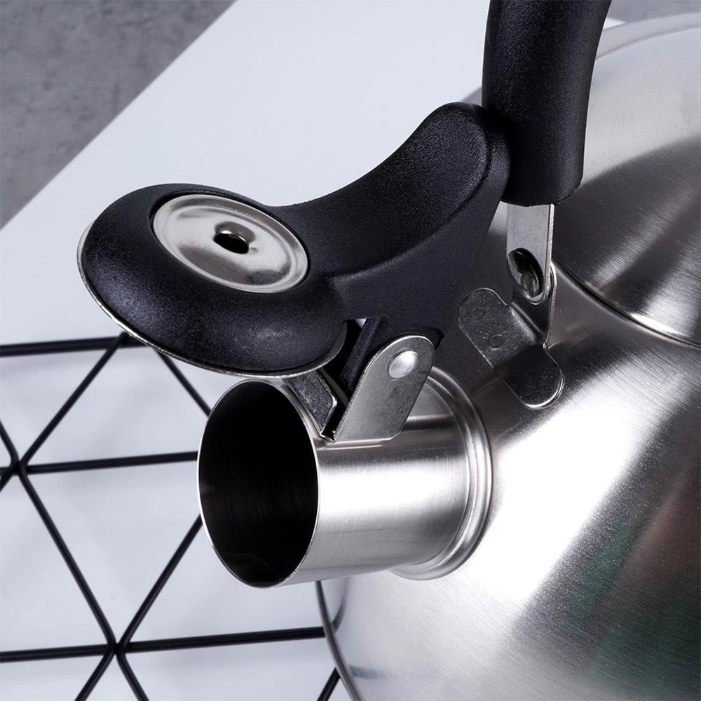 - Czajnik z uchylnym gwizdkiem. Wykonany ze stali nierdzewnej w kolorze srebrnym, a uchwyt z nylonu w czarnym kolorze. Nadaje się kuchenek gazowych, elektrycznych, ceramicznych i halogenowych.