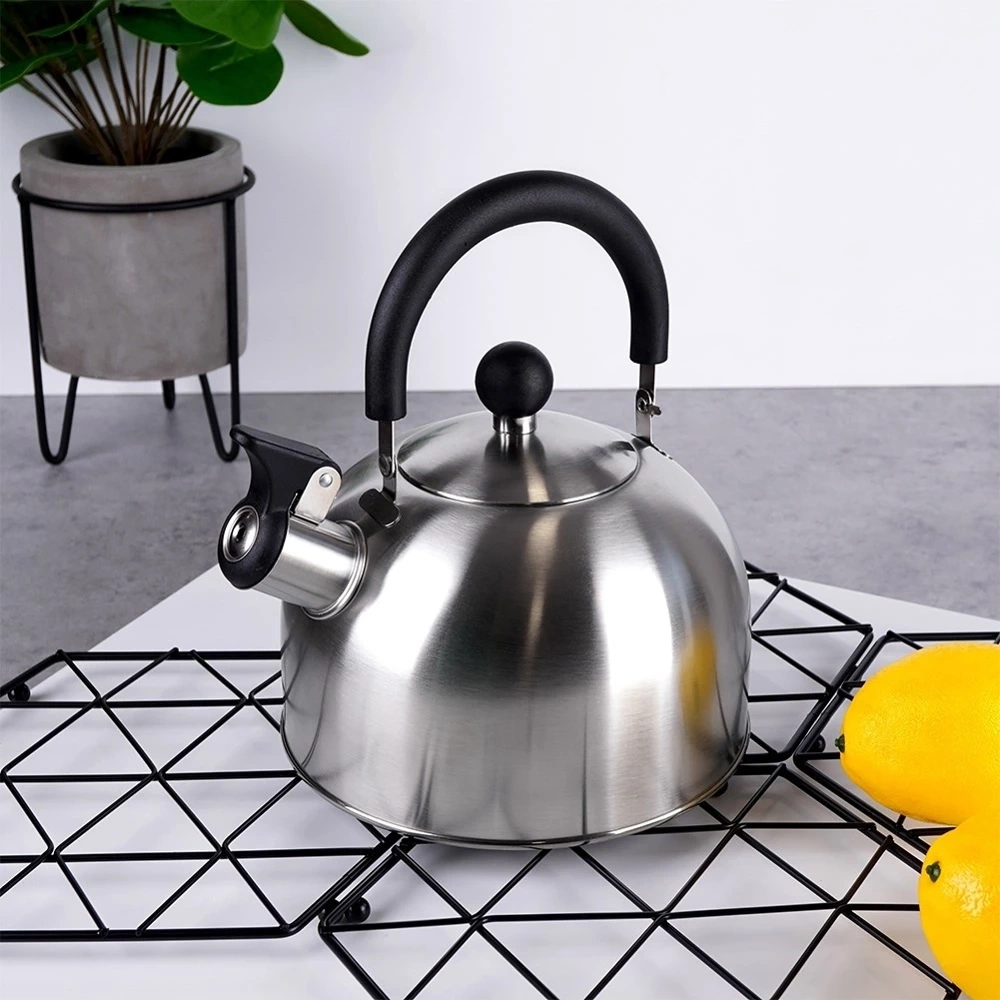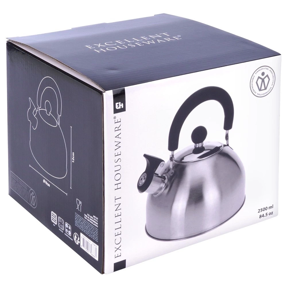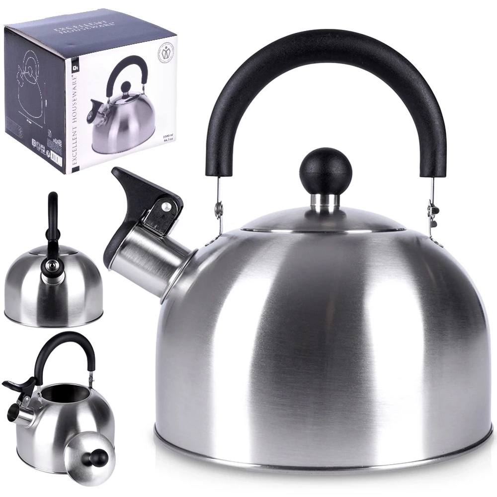 - STALOWY - Klasyczny czajnik wykonany ze stali nierdzewnej w srebrnym kolorze. Stal nierdzewna jest trwała oraz neutralna dla podgrzewanej wody, nie wpływa w żaden sposób na jej właściwości. Posiada uchylny gwizdek oraz zdejmowaną pokrywkę. Czajnik ma pojemność całkowitą 2,5 litra oraz wysokość 22 cm, pojemność użytkowa wynosi 1,9 litra.