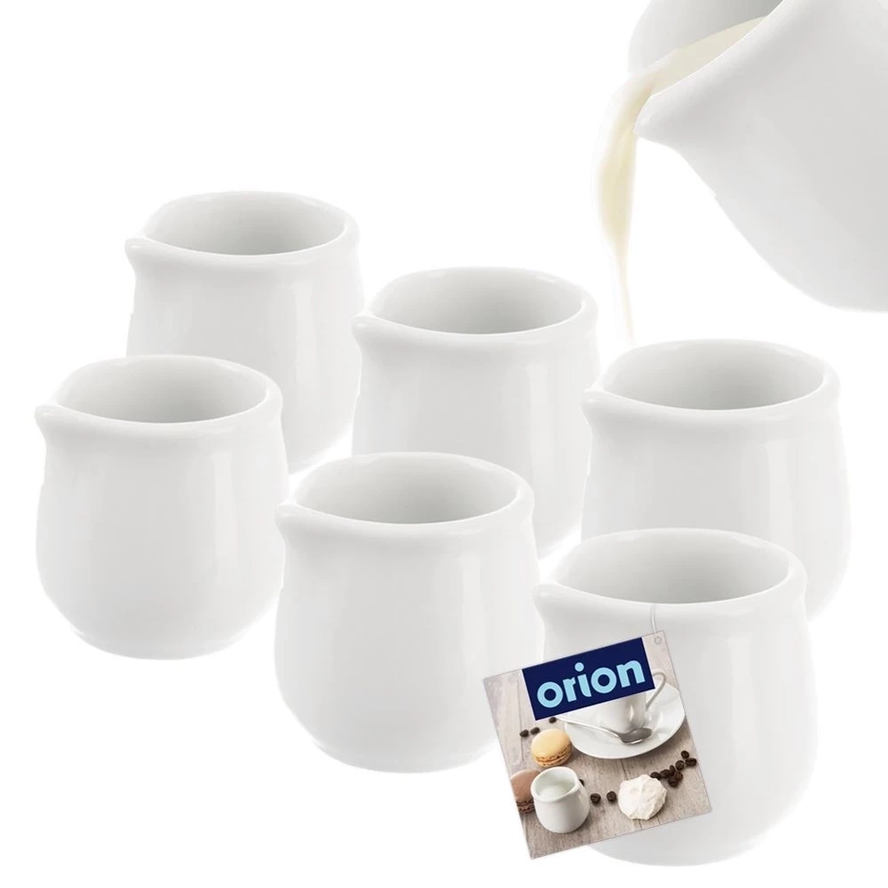 Komplet sześciu dzbanuszków idealnych na mleko, śmietankę lub sos. Sprawdzą się zarówno w domu, jak i w gastronomii. Wygodne w użytkowaniu, posiadają praktyczne dzióbki, które ułatwiają nalewanie. Niezwykle przydatne do serwowania mleczka lub śmietanki do kawy. Posiadają modny, biały kolor i pięknie prezentują się na stole. Idealnie komponują się z inną zastawą stołową. Oryginalny produkt czeskiej marki Orion. Wyprodukowano zgodnie z europejskimi standardami.