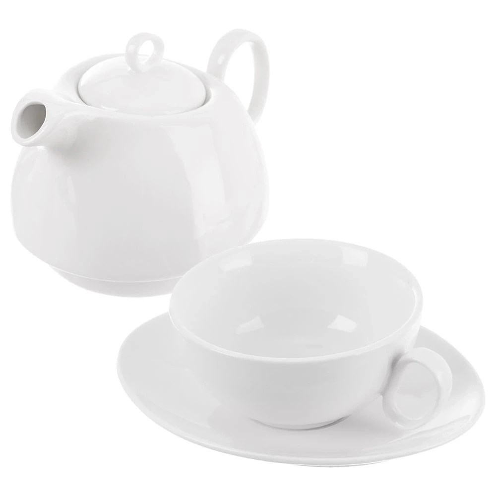 Dzbanek do parzenia herbaty w komplecie z filiżanką i owalnym spodkiem. Dzięki specjalnej formie dzbanek możemy ustawić na filiżance. Świetny zestaw do parzenia herbaty, kawy czy ziół. Biała porcelana pięknie prezentuje się na stole i idealnie współgra z pozostałą zastawą stołową. Prosty i klasyczny kształt sprawia, że dzbanek i filiżanka ze spodkiem są bardzo wygodne w użytkowaniu. Idealnie sprawdzą się w użytku domowym. Łatwe w czyszczeniu i użytkowaniu. Oryginalny produkt czeskiej marki Orion. Wyprodukowano zgodnie z europejskimi standardami.