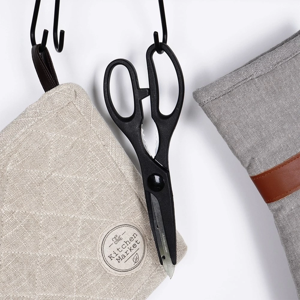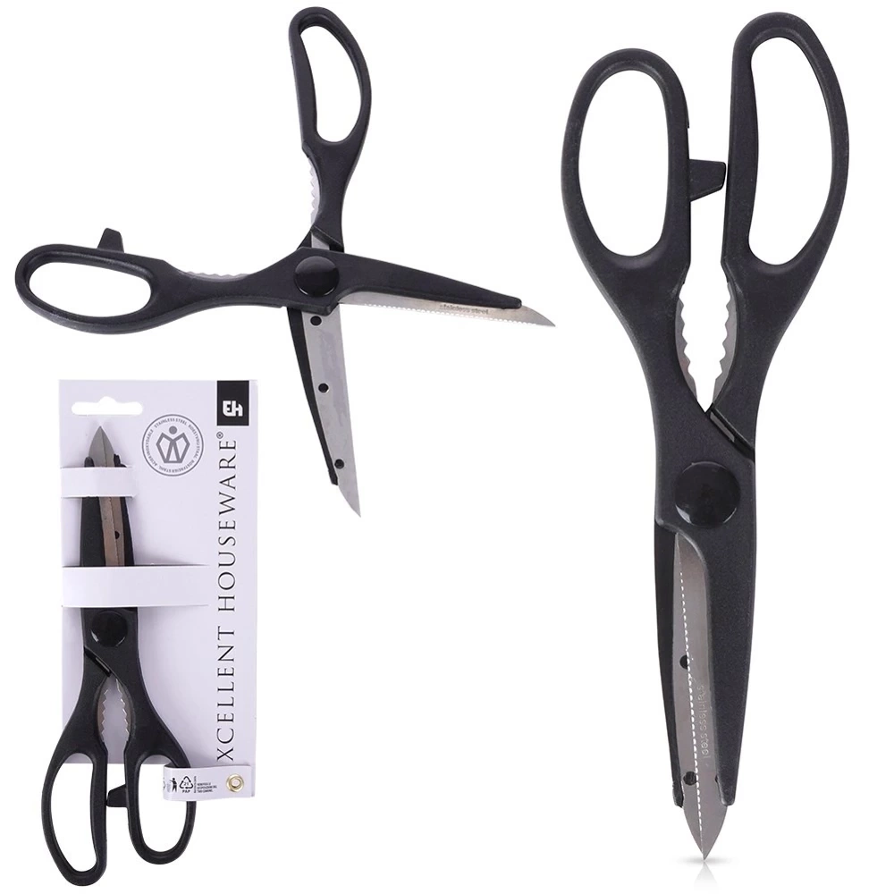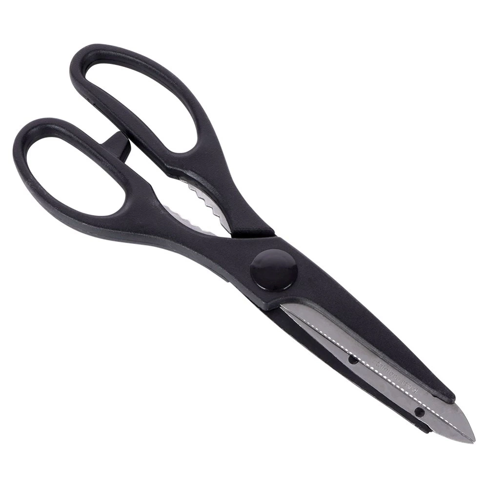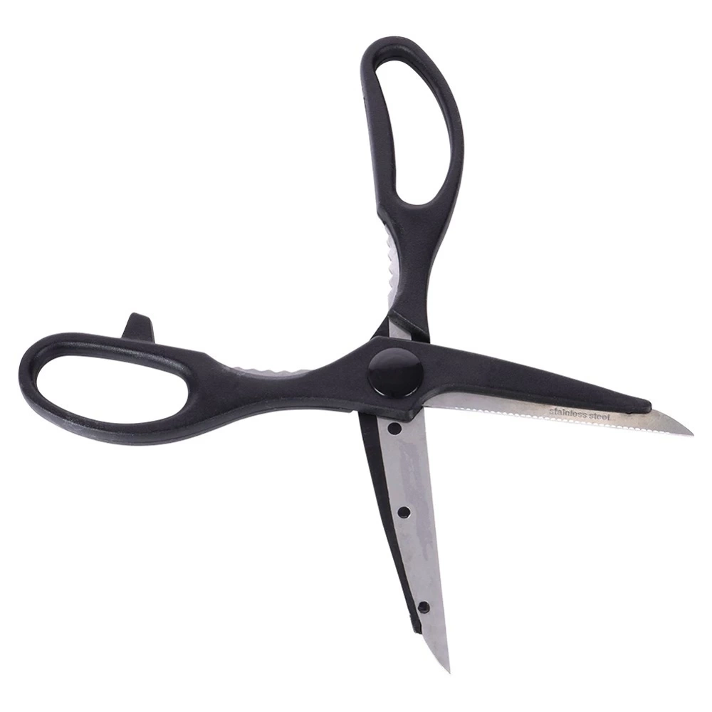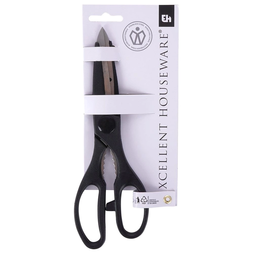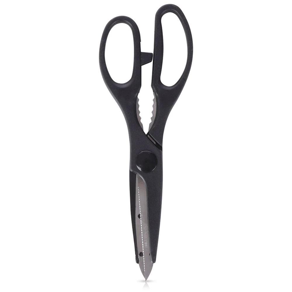 - Wielofunkcyjne nożyczki o długości 21 cm. Spełniają funkcję nożyczek o uniwersalnym zastosowaniu, dziadka do orzechów oraz otwieracza do kapsli. Zapewniają precyzyjne cięcie.