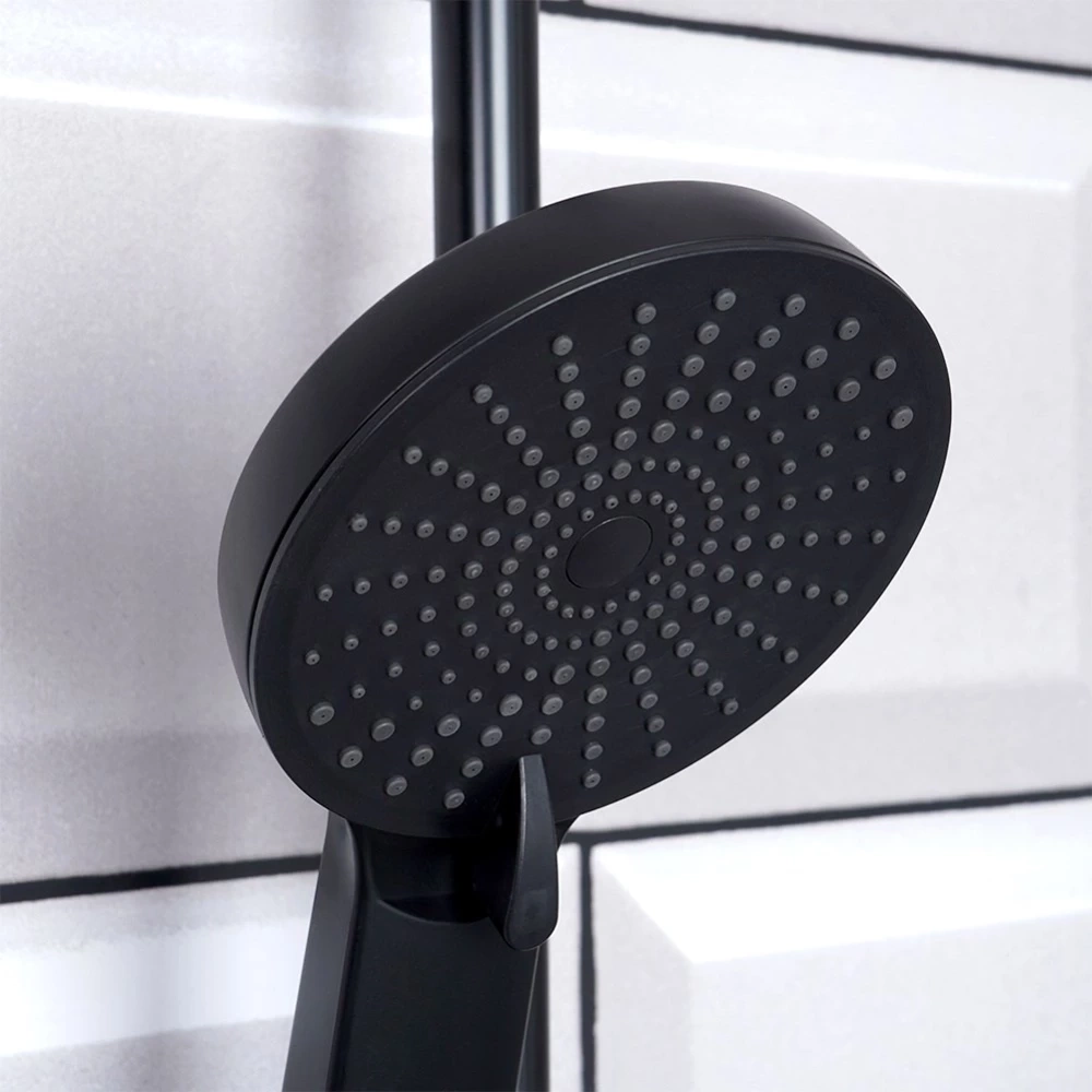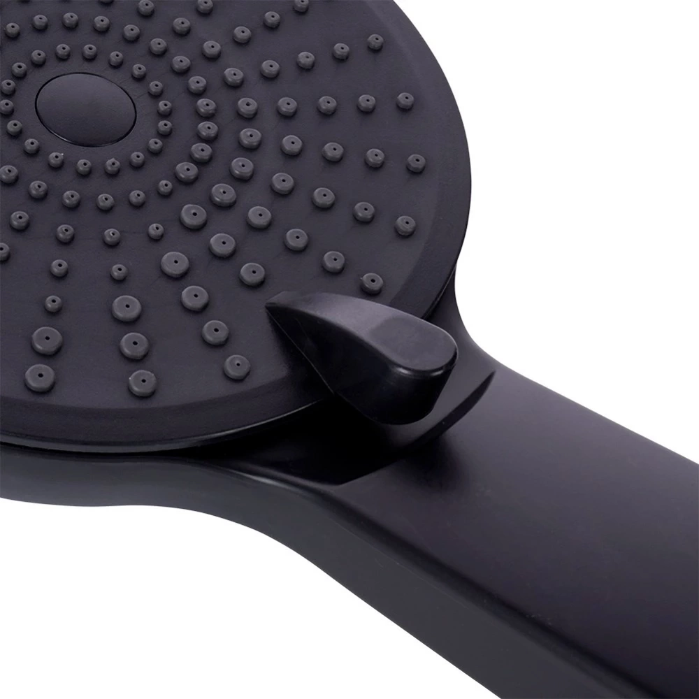 - Czarna słuchawka prysznicowa o średnicy 11 cm. Pasuje do każdego węża prysznicowego (brak w zestawie). Niezwykle wytrzymała i łatwa w czyszczeniu. Posiada trzy funkcje strumienia.