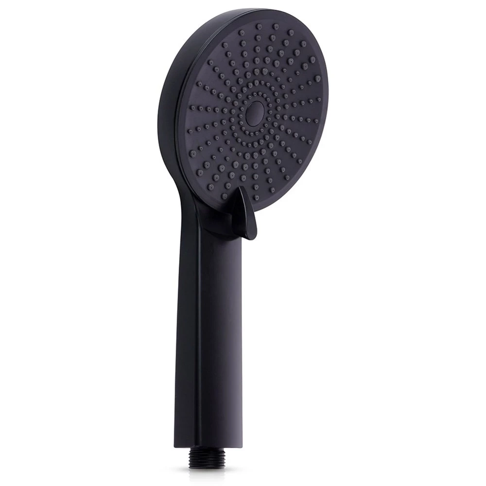 Okrągła słuchawka prysznicowa z trzema funkcjami strumienia. Wykonana z wytrzymałych materiałów. Niezwykle wygodna w użytkowaniu i łatwa w czyszczeniu. Słuchawka jest uniwersalna i pasuje do każdego węża oraz uchwytu prysznicowego. Utrzymana w industrialnym stylu, świetnie komponuje się w każdym wnętrzu. Ogranicznik przepływu wody przyczynia się do redukcji zużycia wody, co może obniżyć koszty i korzystnie wpłynąć na środowisko. Czarna rączka prysznicowa sprzedawana jest bez węża (do kupienia osobno). Oryginalny produkt holenderskiej marki Bathroom Solutions. Wyprodukowano zgodnie z europejskimi standardami.
