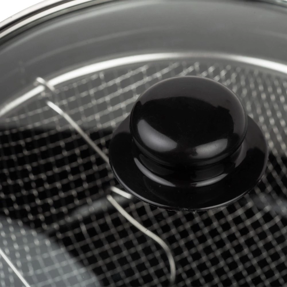 Garnek do głębokiego smażenia, wyposażony w pokrywkę z odpowietrznikiem pary oraz sitko. Z jego pomocą przygotujemy frytki, krążki cebulowe, nuggetsy i wiele innych przekąsek. Oprócz przyrządzania potraw wymagających smażenia na głębokim tłuszczu, garnek nadaje się także do klasycznego gotowania. Niezwykle solidnie wykonany z najwyższej jakości materiałów. Dobrze wyprofilowany kształt garnka, pozwala na łatwe czyszczenie. Stalowe sitko umożliwia odsączanie nadmiaru tłuszczu z potraw po ich usmażeniu. Oryginalny produkt greckiej marki NAVA. Wyprodukowano zgodnie z europejskimi standardami.