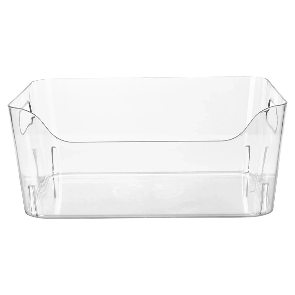Kuchenny pojemnik do przechowywania produktów spożywczych. Świetnie sprawdzi się jako organizer do lodówki, zwłaszcza do przechowywania owoców oraz warzyw. Dzięki przezroczystej formie można z łatwością zobaczyć zawartość pojemnika. Jest łatwy w utrzymaniu czystości i wygodny w użytkowaniu, dzięki praktycznym uchwytom. Pojemnik nie posiada pokrywki. Przydatny w każdym domu. W naszej ofercie dostępne są również pojemniki w innych rozmiarach. Wyprodukowano zgodnie z europejskimi standardami.