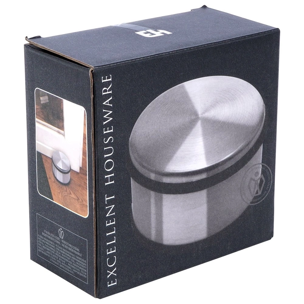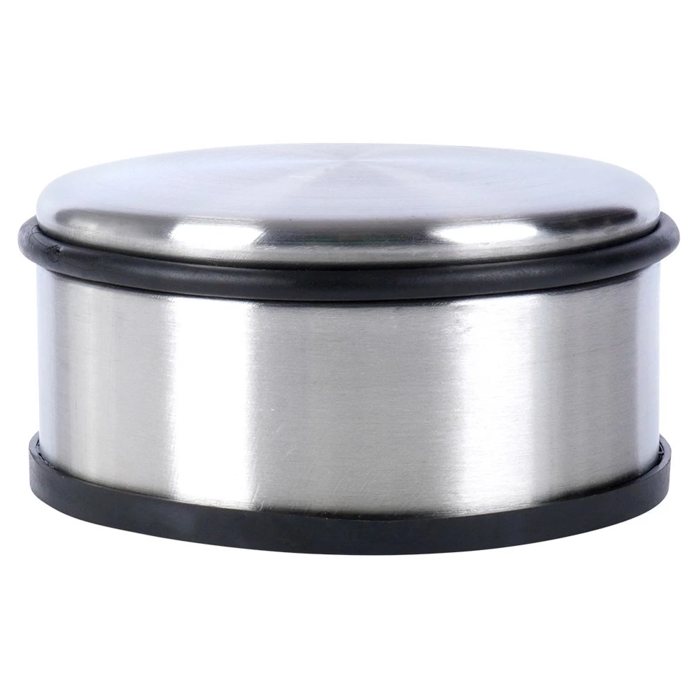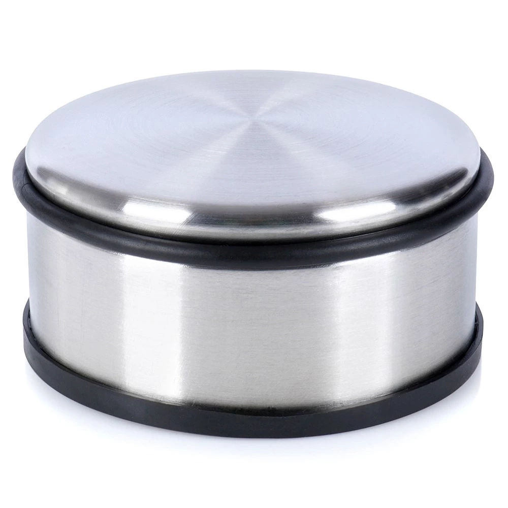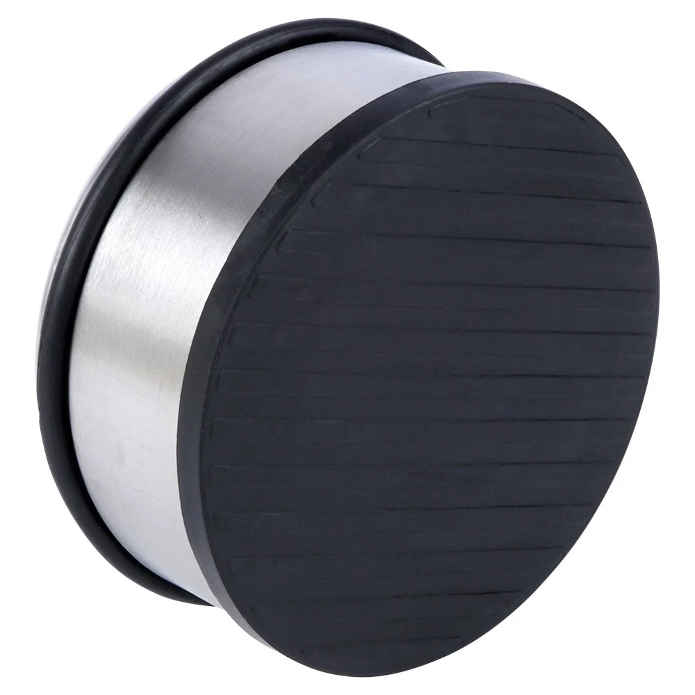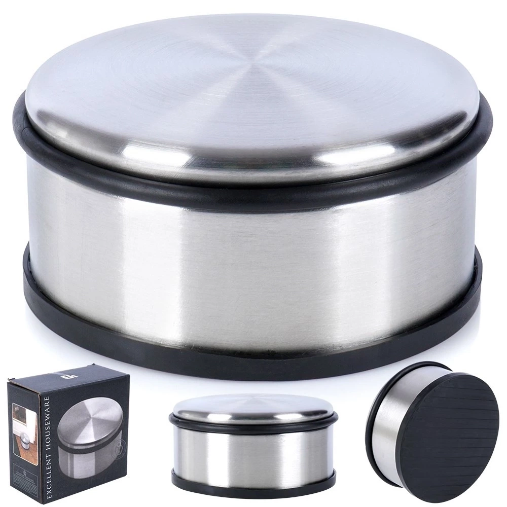 - Stoper do drzwi wykonany ze stali nierdzewnej. Stoper jest ciężki i nie wymaga montażu. Posiada gumowe elementy, które zabezpieczą drzwi oraz podłogę przed uszkodzeniem.