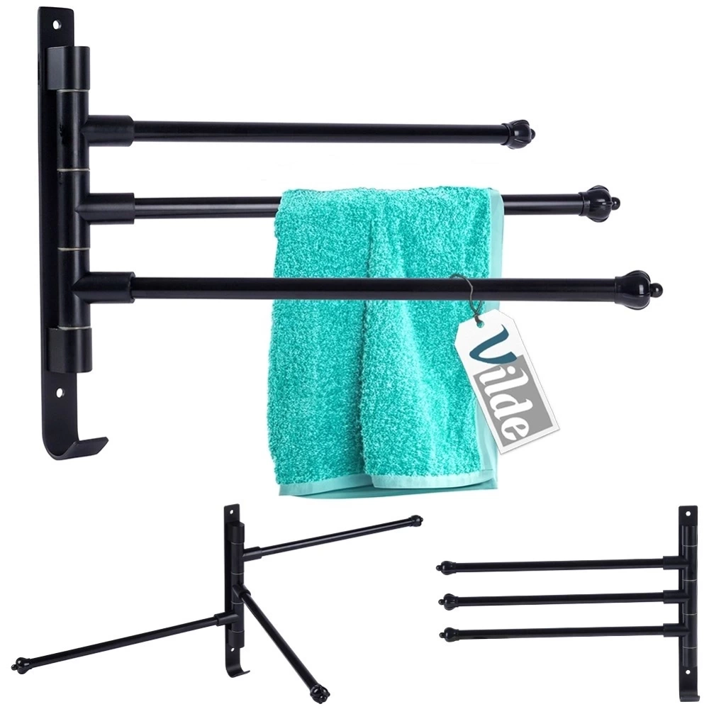 - Wieszak łazienkowy do zamocowania na ścianie. Posiada obrotowe ramiona, które można dowolnie ustawić oraz dodatkowy haczyk. Utrzymany w modnym, czarnym kolorze.