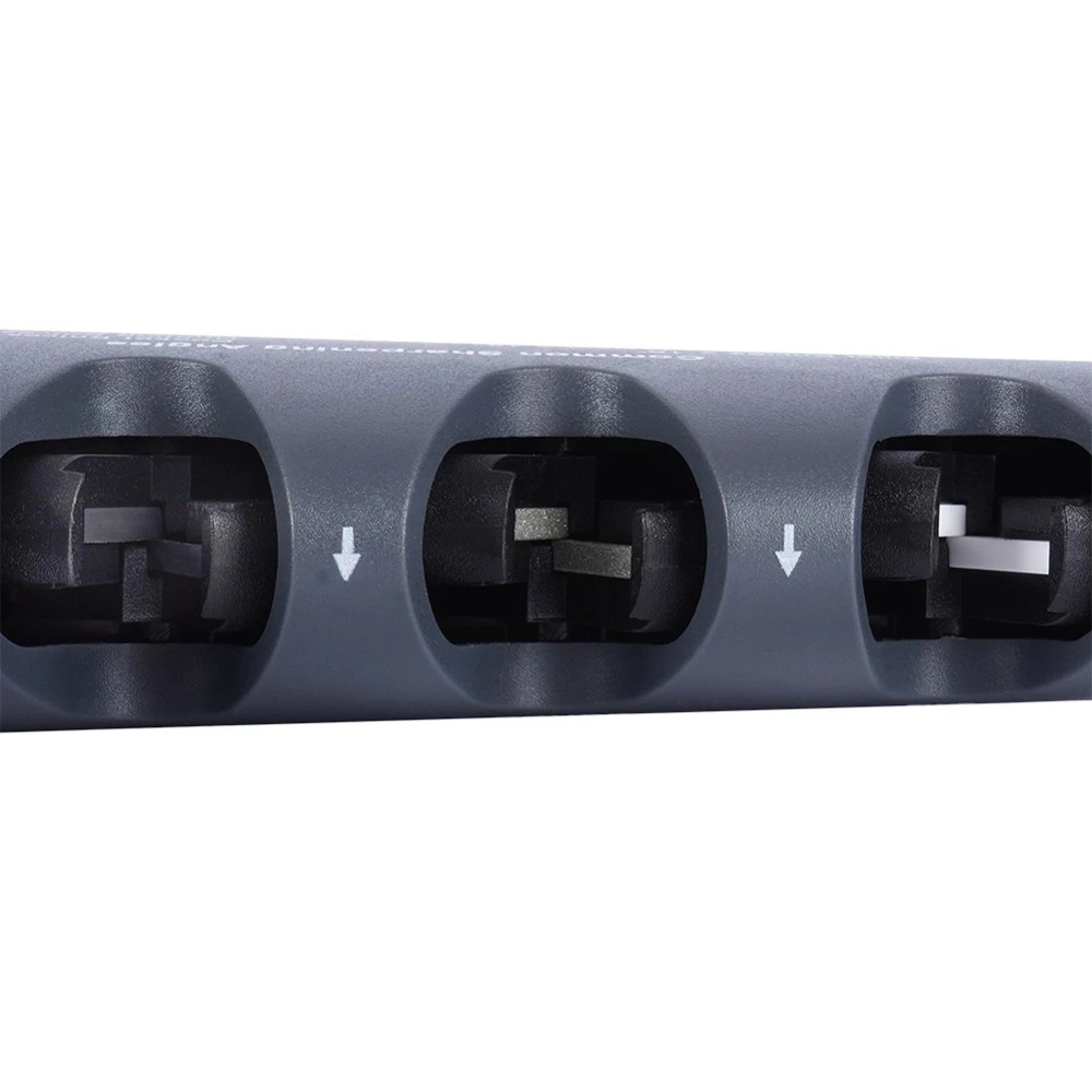 - Ostrzałka z czterema strefami ostrzącymi oraz płynną regulacją kąta ostrzenia od 14 do 24°. Posiada specjalne miejsce do ostrzenia nożyczek.