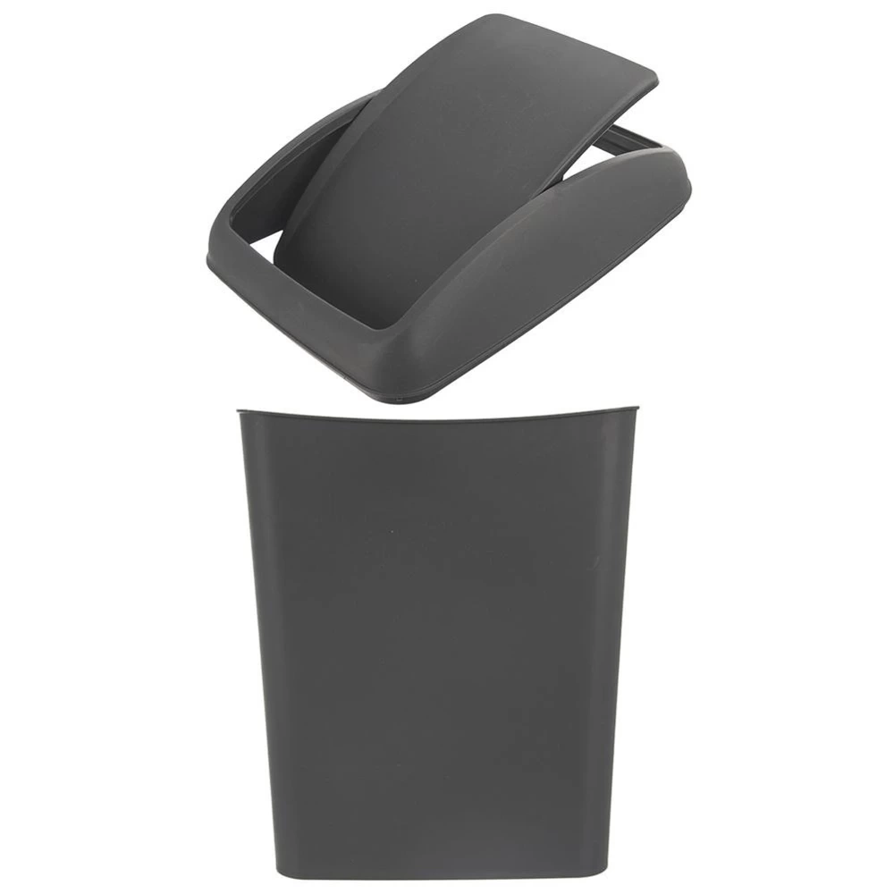 - Kosz na śmieci o pojemności 40 l. Wykonany z wytrzymałego tworzywa w ciemnym, szarym kolorze. Wyposażony w praktyczną, uchylną pokrywkę, co ułatwia wyrzucanie odpadów.
