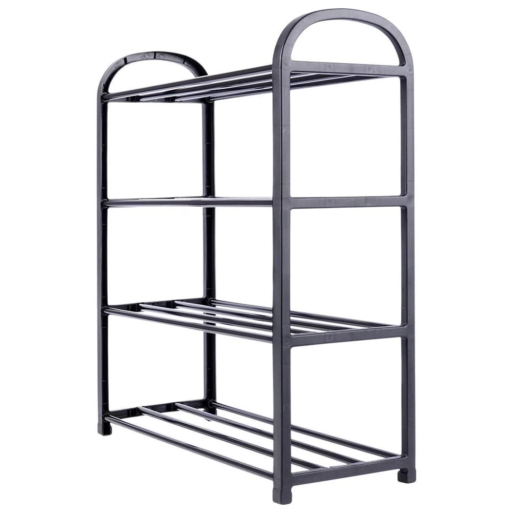 - CZTEROPOZIOMOWY - Regał na buty pozwoli na wygodne przechowywanie obuwia na czterech różnych poziomach. Regał ma wymiary 49,5 x 18,5 x 56,5 cm. Dzięki niemu lepiej wykorzystamy przestrzeń w domu, a nasze obuwie będzie posegregowane i uporządkowane. Pomieści w zależności od wielkości butów od 8-12 par butów.