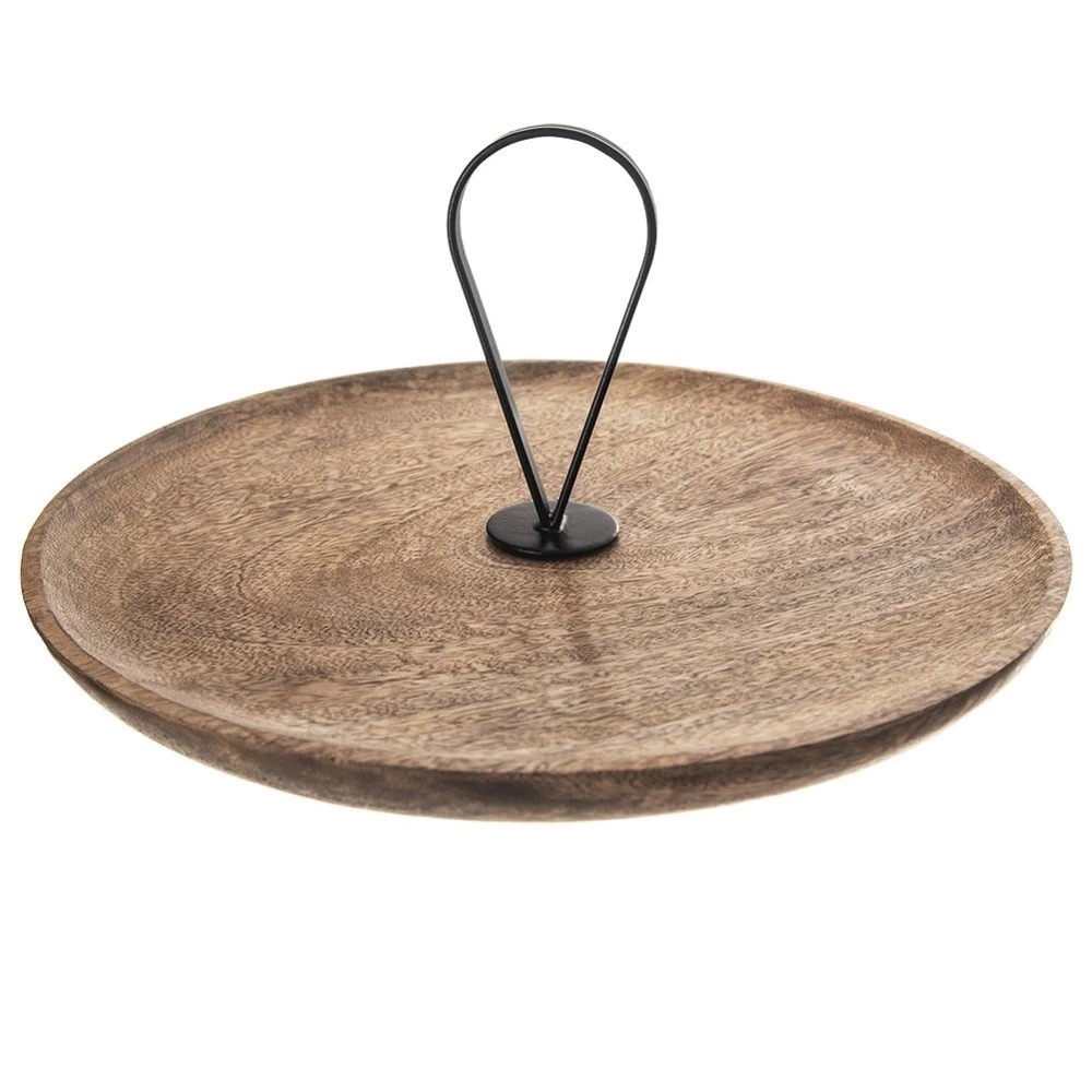 - Drewniana patera na ciastka, ciasto, owoce, przystawki lub przekąski. Wykonana z egzotycznego drewna mango, posiada uchwyt wykonany z metalu.