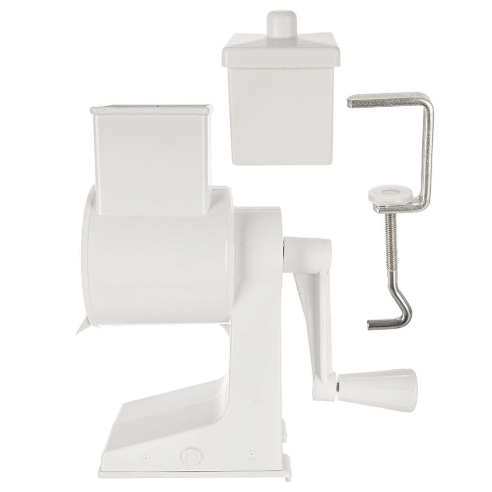 - Maszynka do tarcia bułki tartej, orzechów, suszonych ziół, owoców lub warzyw. Wykonana z wytrzymałego tworzywa w białym kolorze oraz stali nierdzewnej.