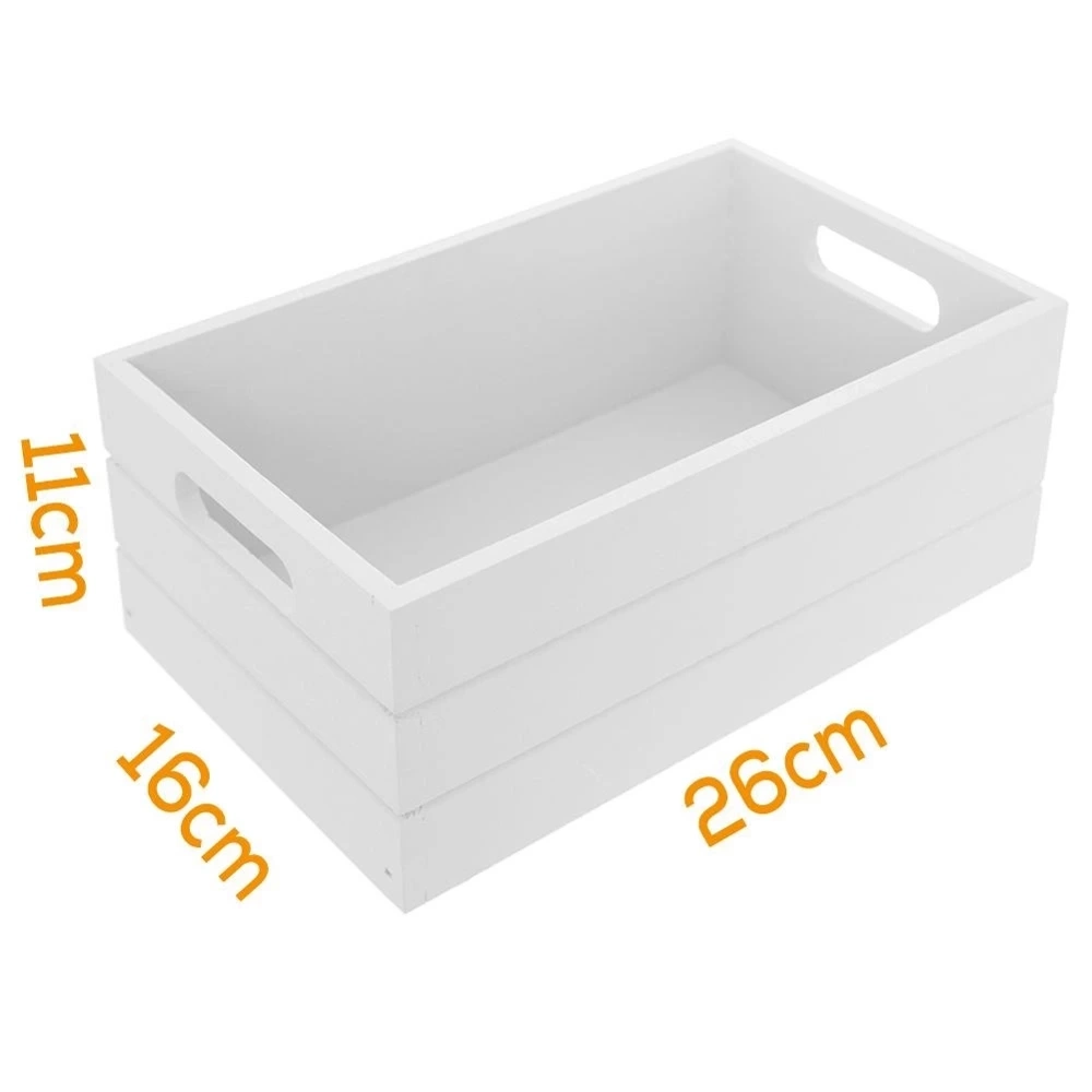 - DREWNIANA - Wykonana w całości z wytrzymałego drewna, malowana na biały kolor. Skrzynka posiada prostokątny kształt i dwa otwory po bokach dla łatwiejszego przenoszenia.