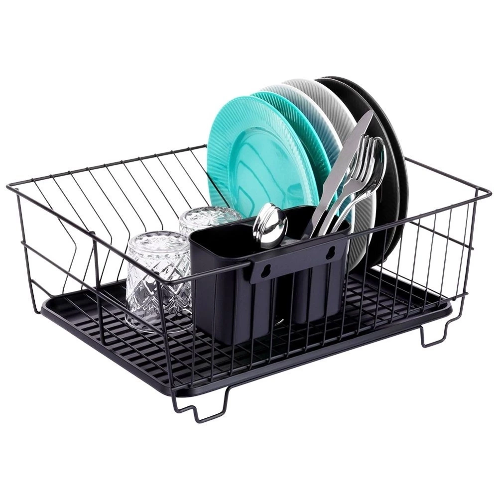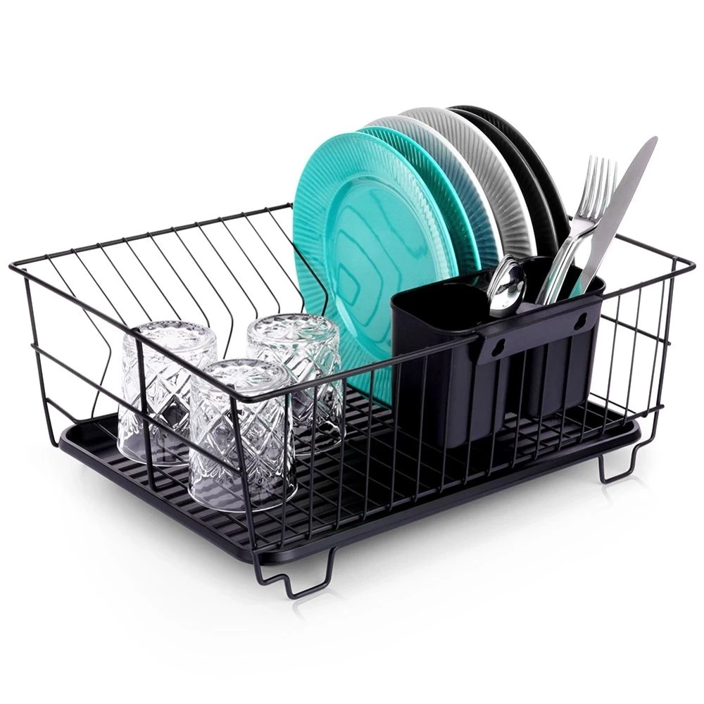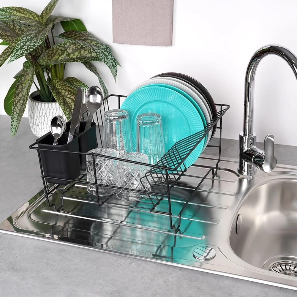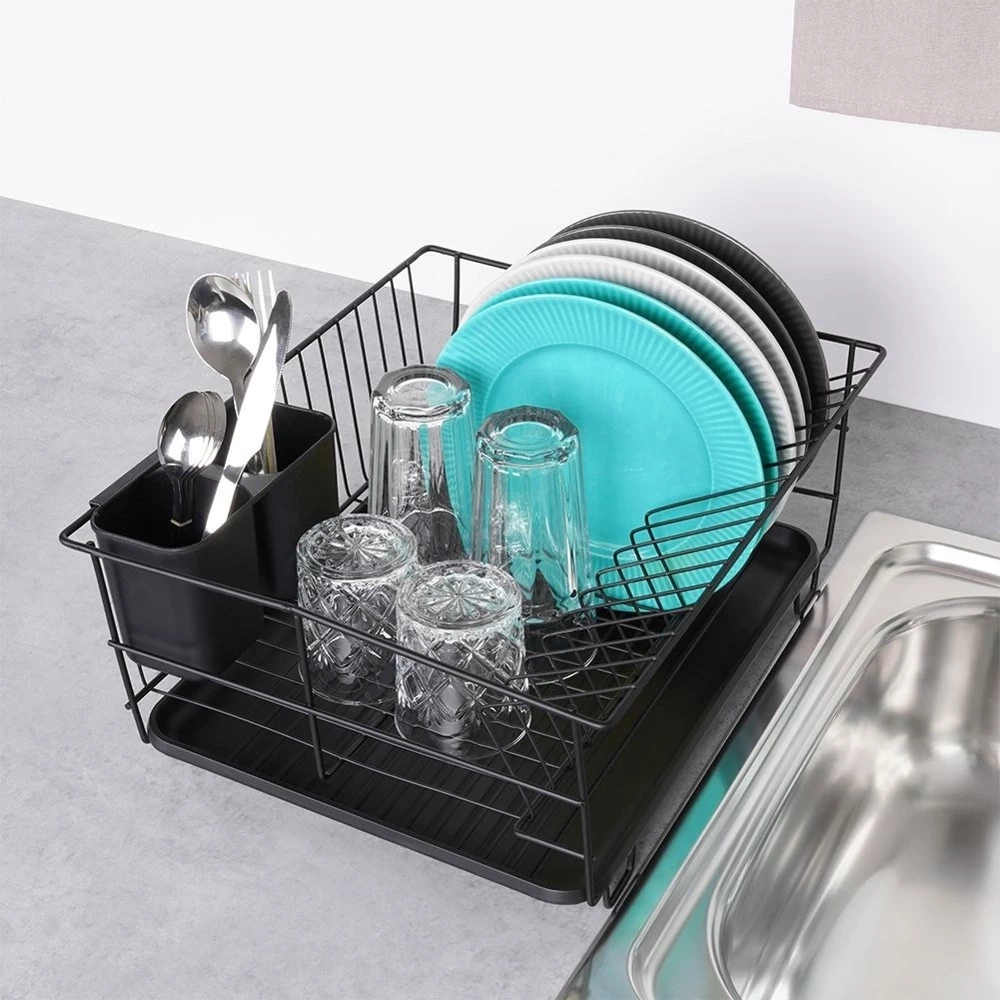 - Elegancka suszarka do naczyń w kolorze czarnym. Posiada miejsce na talerze, szklanki oraz ociekacz sztućce. Wyposażona w wyjmowaną tacę ociekową.