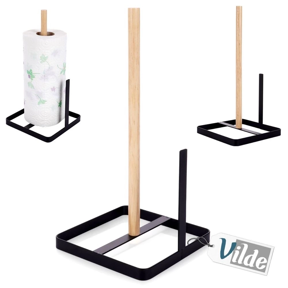 Stojak kuchenny na ręczniki papierowe, ułatwia codzienne czynności i utrzymanie porządku w kuchni. Solidnie wykonany z wytrzymałych materiałów. Stojak utrzymany w modnym połączeniu czarnego koloru z drewnem, więc efektownie prezentuje się w każdym wnętrzu. Pozwoli nam na wygodne korzystanie i przechowywanie ręczników. Przydatny w każdej kuchni. Zapewnia łatwe i wygodne wyrywanie arkuszy ręcznika, dzięki czemu można szybko i sprawnie wyczyścić powierzchnie czy ręce bez konieczności szukania i rozwijania całej rolki. Oryginalny produkt marki Vilde. Wyprodukowano zgodnie z europejskimi standardami.