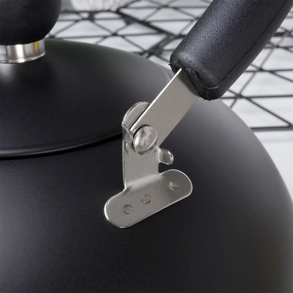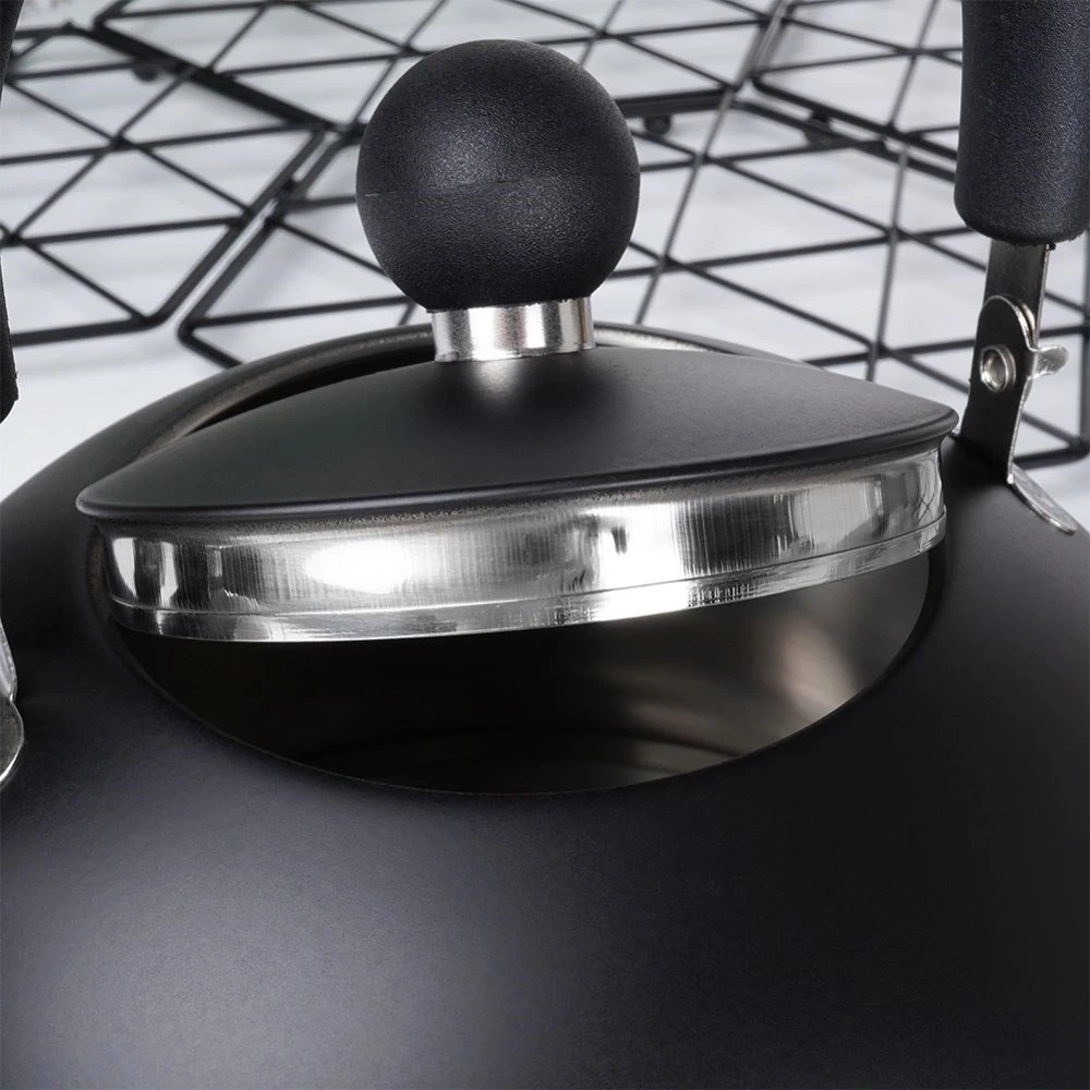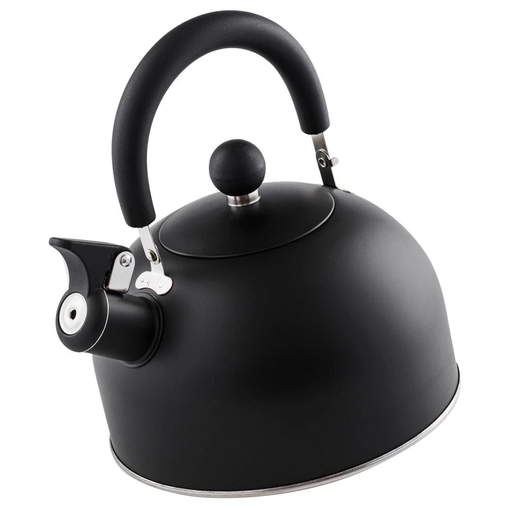- Czajnik z uchylnym gwizdkiem. Wykonany ze stali nierdzewnej w matowym, czarnym kolorze. Do stosowania na wszystkich rodzajach kuchenek.