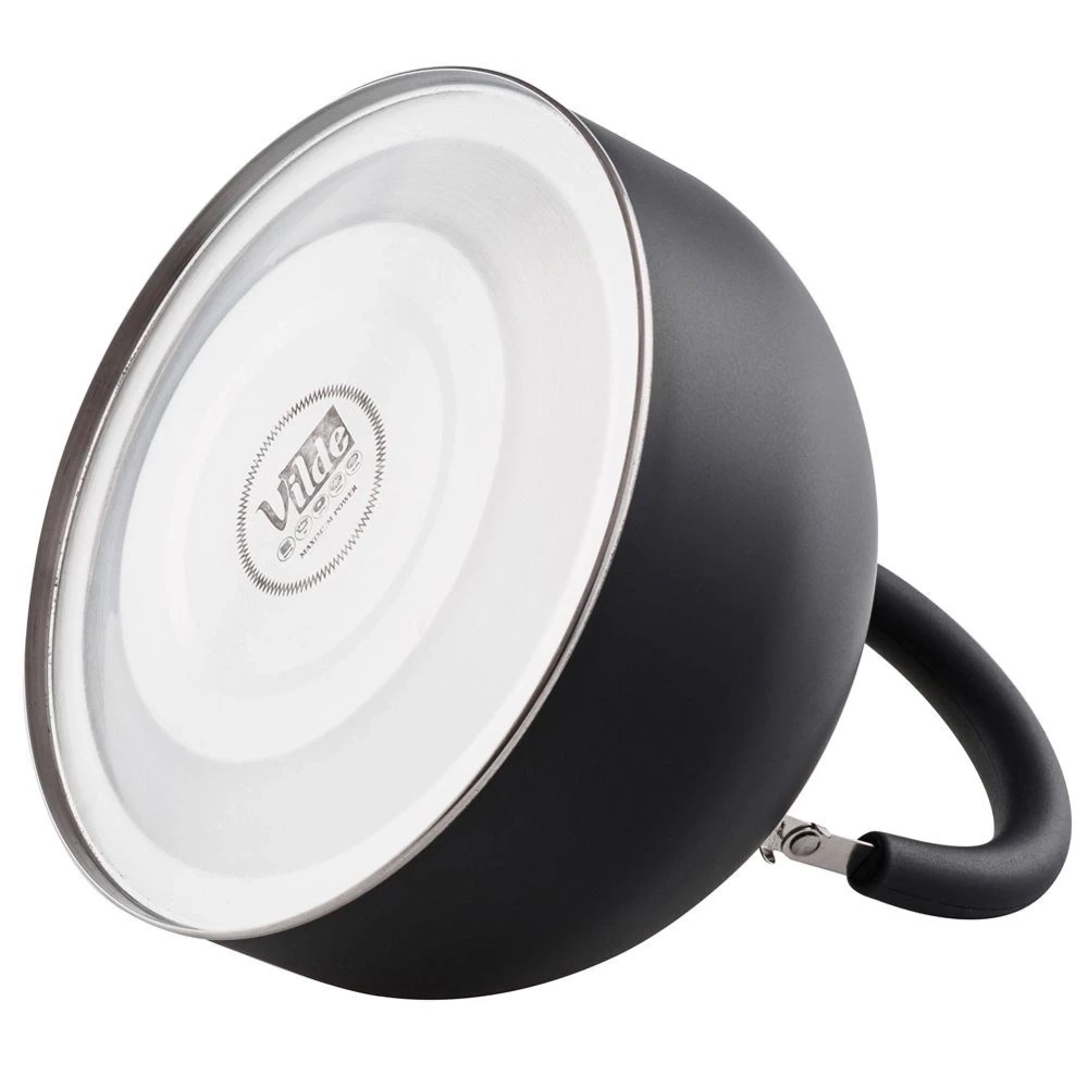 Efektowny czajnik wykonany z najwyższej jakości materiałów. Wykorzystamy go do zagotowania wody na kawę, herbatę czy do zaparzenia ziół. Wygodny w użytkowaniu, dzięki składanej rączce, pokrywce oraz uchylnemu gwizdkowi. Wodę w czajniku zagotujemy bardzo szybko, a czyszczenie go jest bardzo wygodne. Czajnik jest świetnym pomysłem na prezent. UWAGA! Czajnik do gotowania musi być napełniony co najmniej do połowy aby zapobiec przegrzaniu. Zmiany koloru na powierzchni zewnętrznej w przypadku nieprzestrzegania minimalnych parametrów użytkowych nie mogą być powodem do reklamacji. Oryginalny produkt marki Vilde. Wyprodukowano zgodnie z europejskimi standardami.