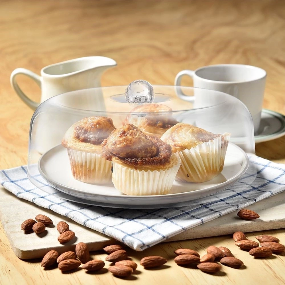 - Osłona na żywność wykonana z przezroczystego akrylu. Pokrywa ma średnicę 29,5 cm. Posiada wygodny uchwyt. Pozwoli zachować świeżość potrawom oraz deserom.