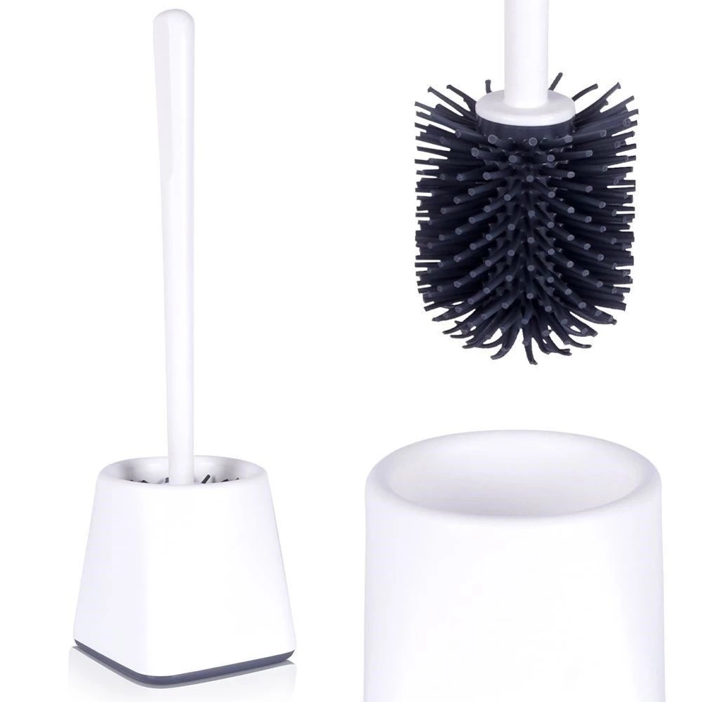 - WYTRZYMAŁA - Pojemnik oraz uchwyt szczotki wykonane z wysokiej jakości tworzywa w kolorze białym. Włosie szczotki wykonane z silikonu w kolorze grafitowym.