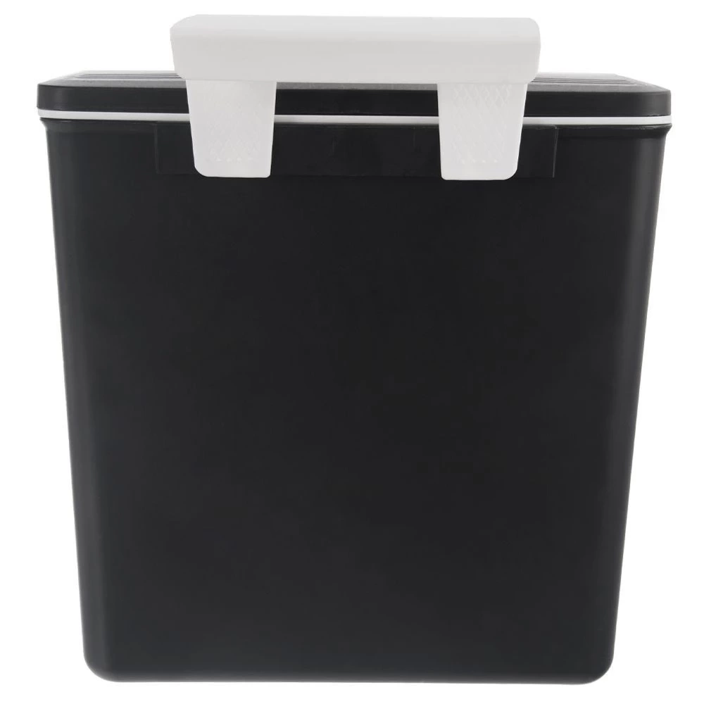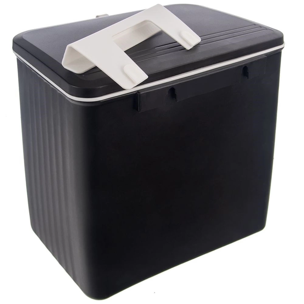 - WYTRZYMAŁY - Wykonany z wysokiej jakości tworzywa w kolorze czarnym. Posiada wygodny uchwyt do otwierania pokrywy wykonany z gumy w kolorze białym.