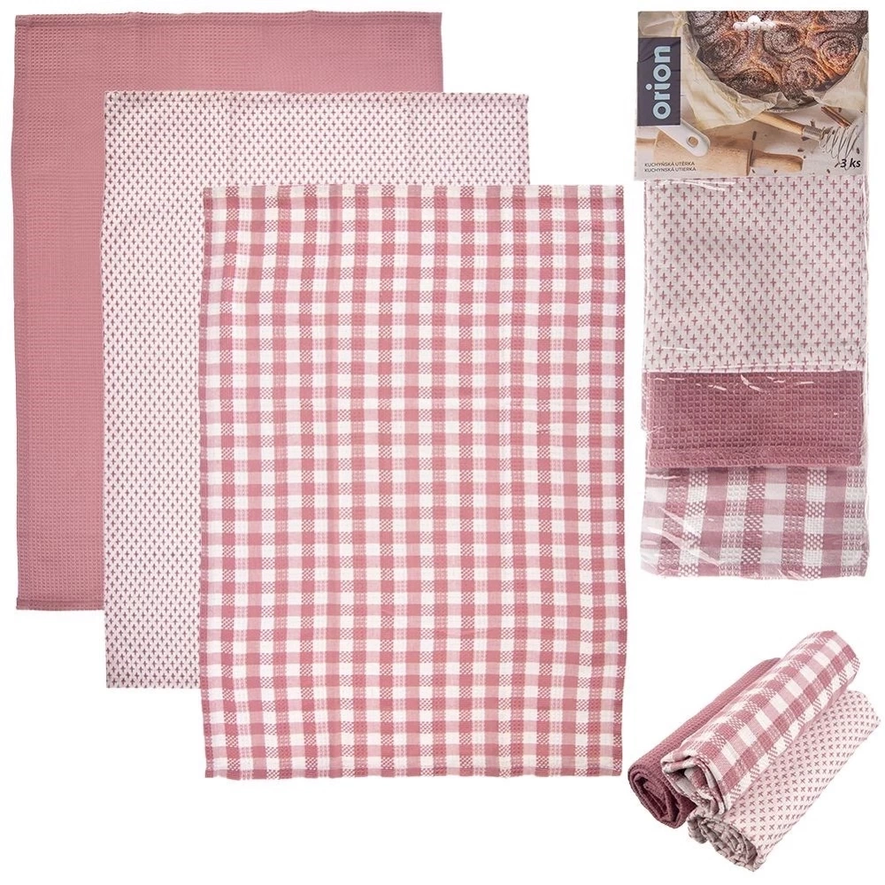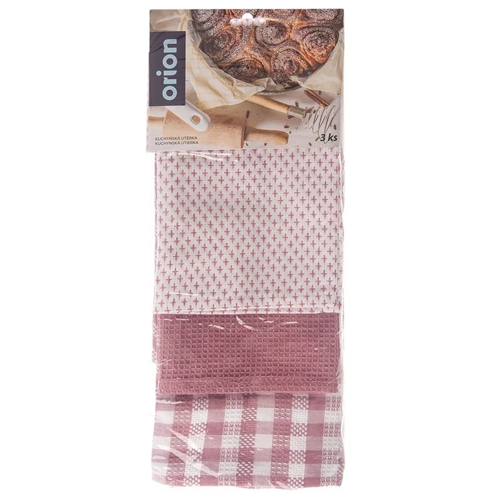 Komplet trzech ścierek kuchennych w trzech różnych wzorach. Ścierki prezentują się bardzo elegancko, są bardzo przydatne podczas codziennych prac w kuchni, możemy wykorzystać je zarówno do wycierania naczyń, rąk, ale również jako serwetkę na stół. Wyróżniają się dużą chłonnością oraz trwałością. Oryginalny produkt czeskiej marki Orion. Wyprodukowano zgodnie z europejskimi standardami.