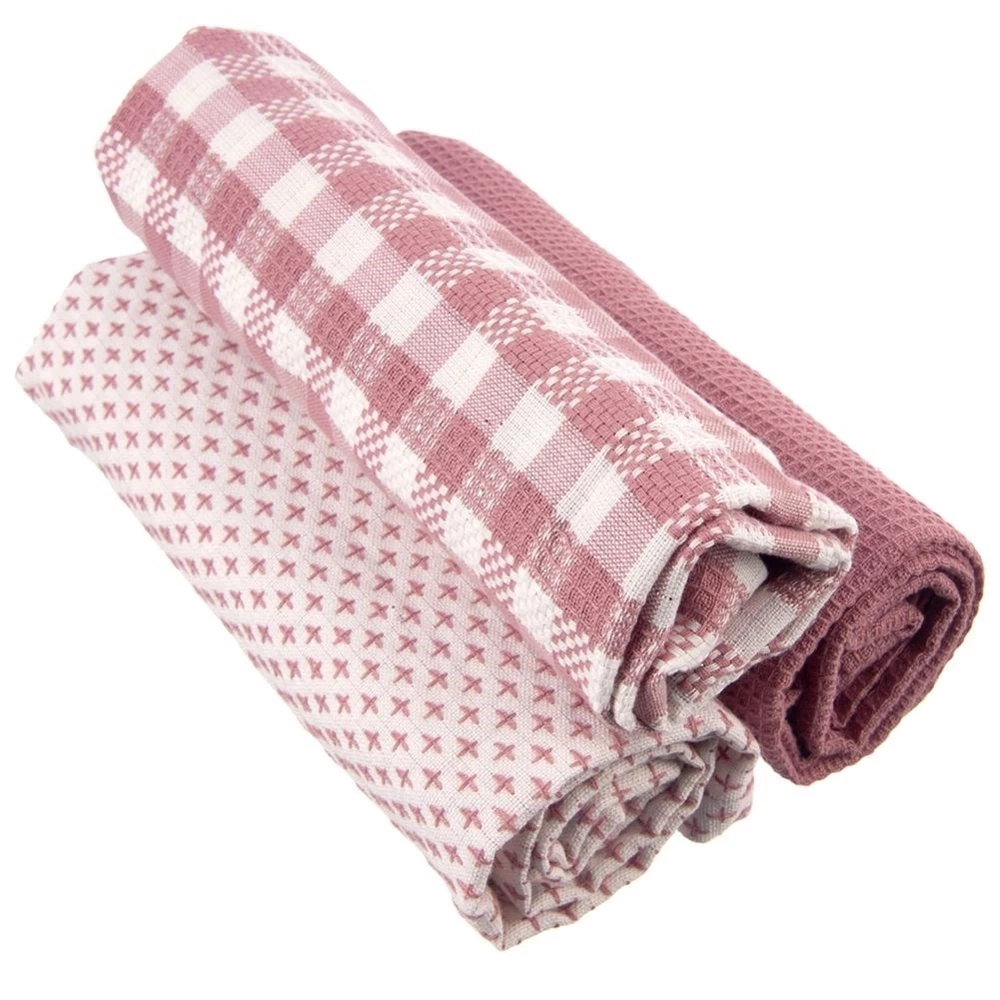 - CHŁONNE - Ścierki wykonane są ze 100% bawełny, co zapewnia im doskonałą chłonność. Nadają się do prania w temperaturze 40°C. Ścierki w zestawie występują w trzech różnych wzorach w odcieniach różu i bieli.