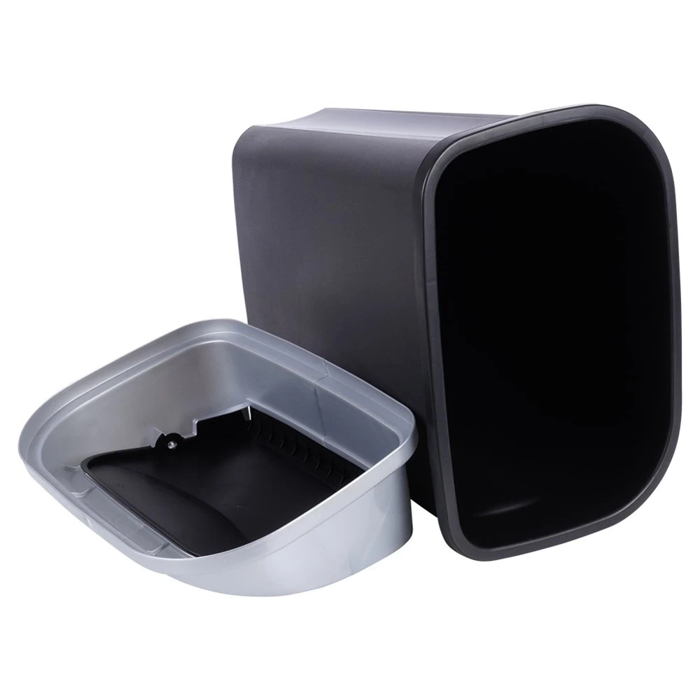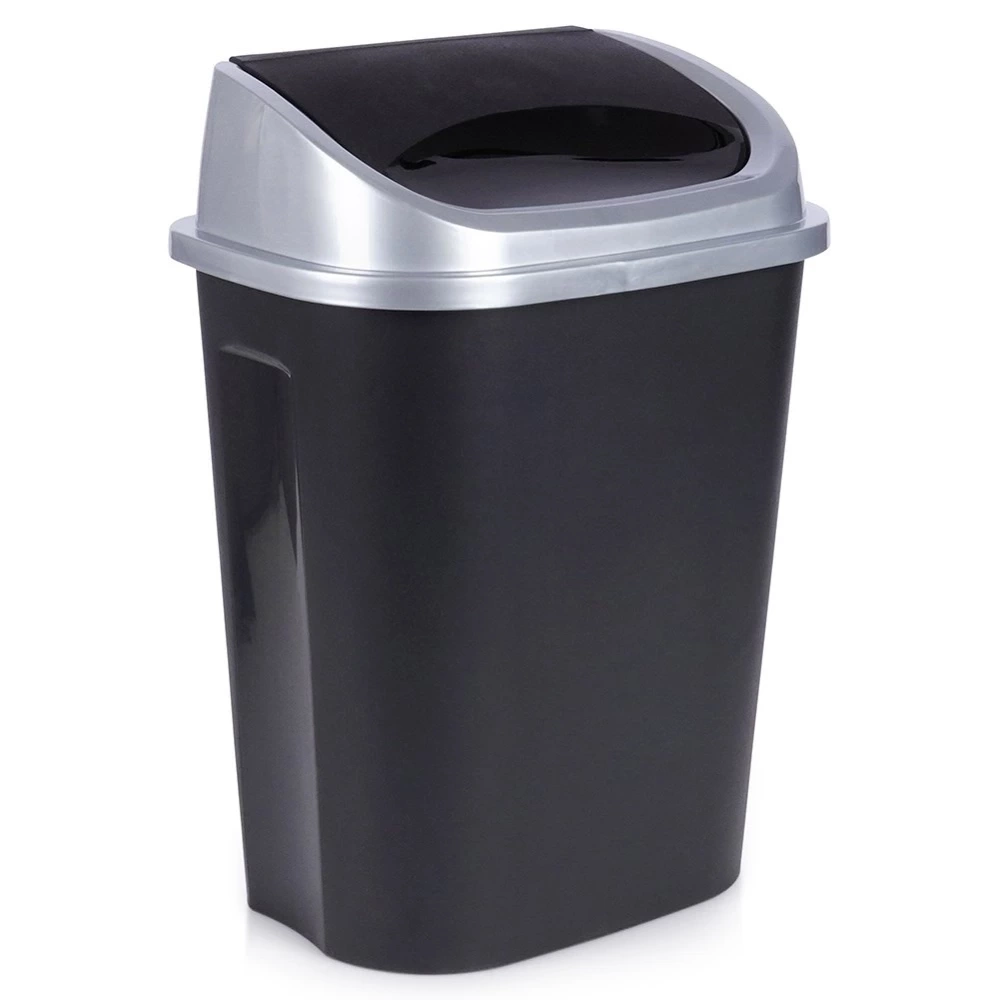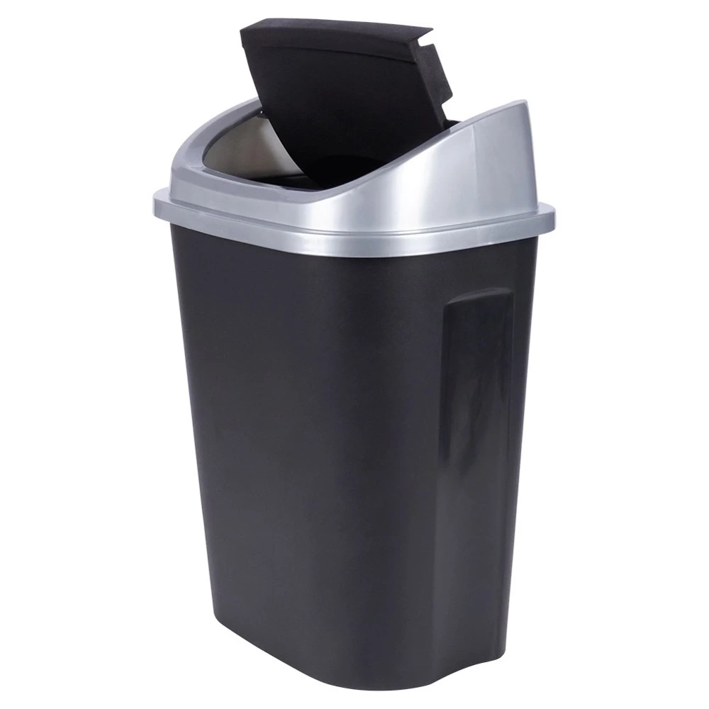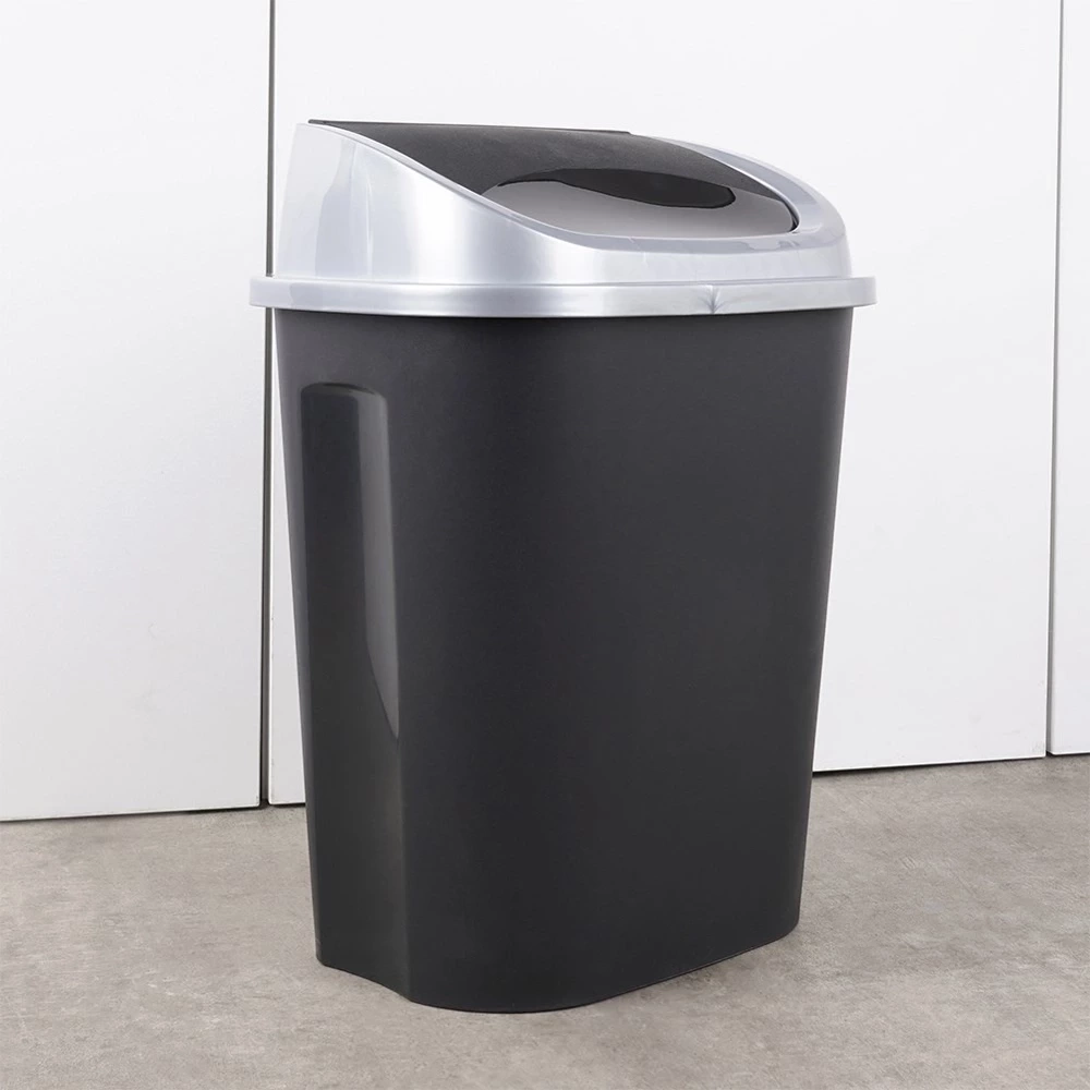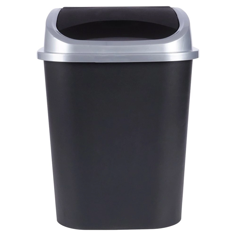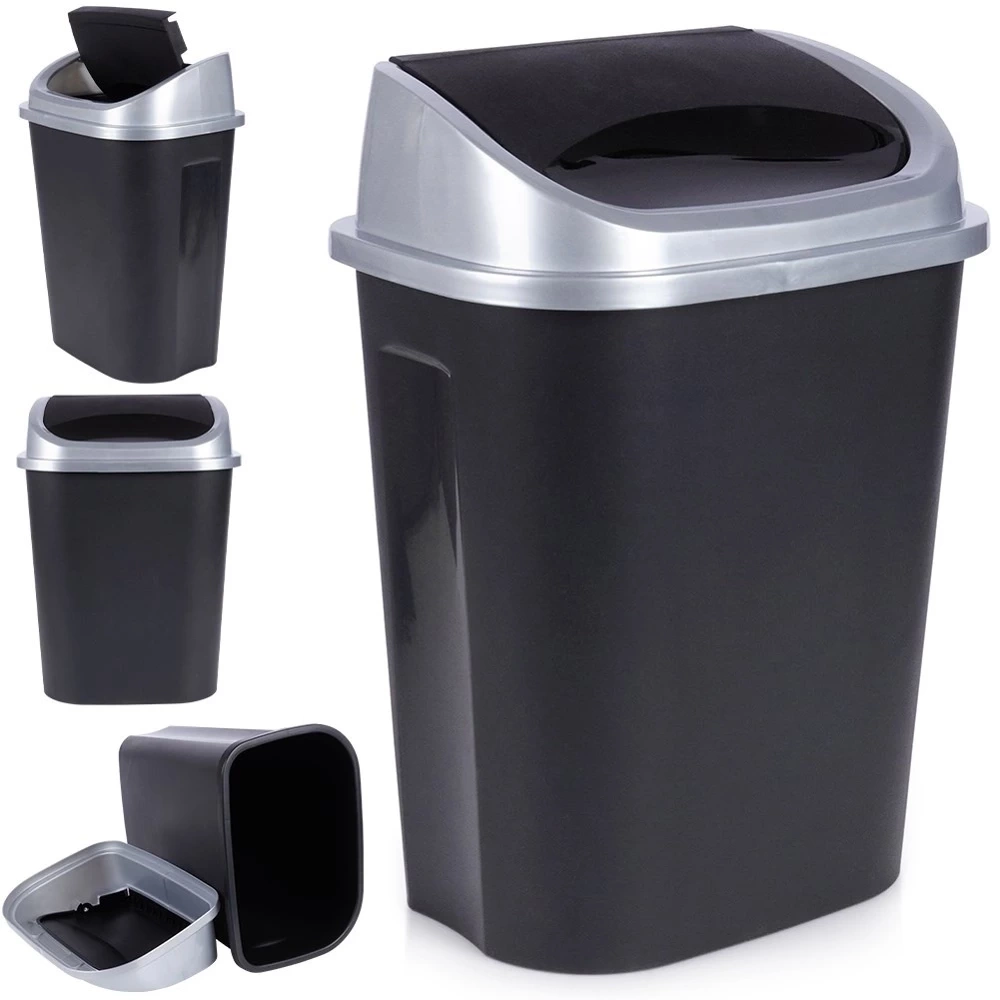 - Kosz na śmieci o pojemności 25 l. Wykonany z wytrzymałego tworzywa w ciemnym, szarym kolorze. Wyposażony w praktyczną, uchylną pokrywkę, co ułatwia wyrzucanie odpadów.