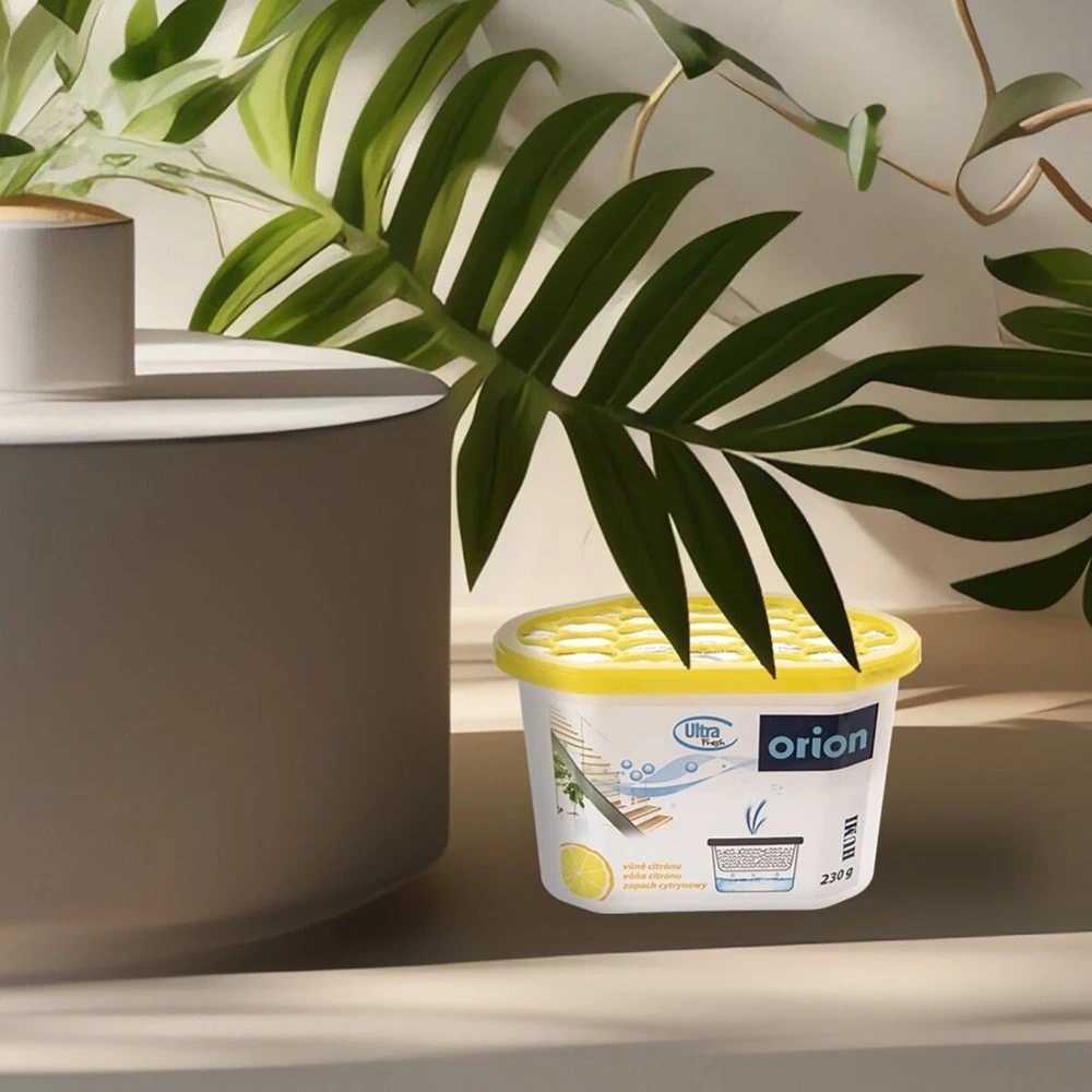 Pochłaniacz wilgoci w formie pojemnika do wygodnego postawienia. Przydatny w każdym domu, pozwoli pozbyć się wilgoci, a także odświeżyć powietrze. Z jego pomocą utrzymamy prawidłową wilgoć w mniejszych pomieszczeniach i zapewnimy przyjemny cytrusowy zapach. Idealny do domu, mieszkania, garażu, a także podczas wyjazdów kamperem, przyczepą kempingową oraz w domku letniskowym. Oryginalny produkt czeskiej marki Orion. Wyprodukowano zgodnie z europejskimi standardami.