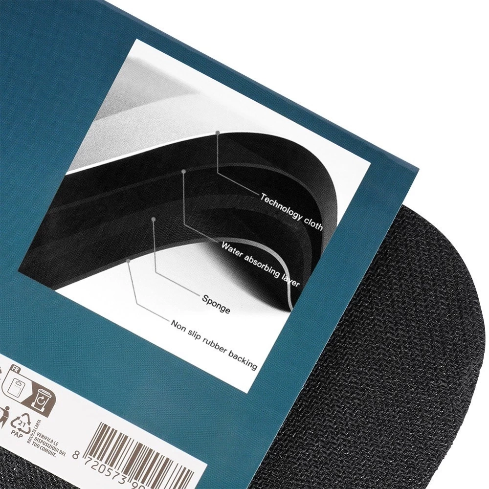 - WYTRZYMAŁA - Wykonana z poliestru, który jest przyjemny w dotyku. Wyposażona w warstwę pochłaniającą wodę. Mata utrzymana w różnych odcieniach szarości. Nadaje się do prania w temperaturze 30°C.