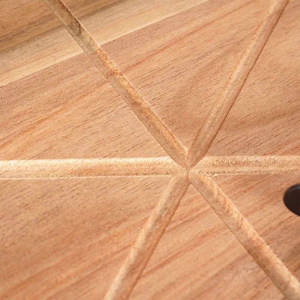 - DREWNIANA - Deska wykonana z drewna akacjowego, dzięki czemu jest wytrzymała a zarazem lekka. Drewno to jest odporne na wilgoć. Nóż do krojenia pizzy posiada ostrze ze stali nierdzewnej w kolorze czarnym oraz uchwyt wykonany z drewna. W celu odpowiedniego użytkowania, nie zaleca się przetrzymywania w niej jedzenia dłużej niż przez 2 godziny. Odporna na temperaturę do 70°C.