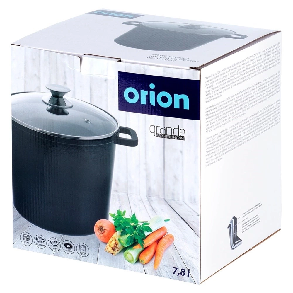 Nieprzywierający garnek wyposażony w pokrywkę z odpowietrznikiem pary. Garnek sprawdzi się do gotowania oraz duszenia, przygotujemy w nim różnego rodzaju dania, zupy czy sosy. Nieprzywierająca powłoka pozwoli na wygodne przygotowanie dań, przy użyciu małej ilości tłuszczu. Efektownie prezentuje się w kuchni oraz podczas serwowania dań bezpośrednio na stole. W naszej ofercie również inne naczynia z serii GRANDE. Oryginalny produkt czeskiej marki Orion. Wyprodukowano zgodnie z europejskimi standardami.
