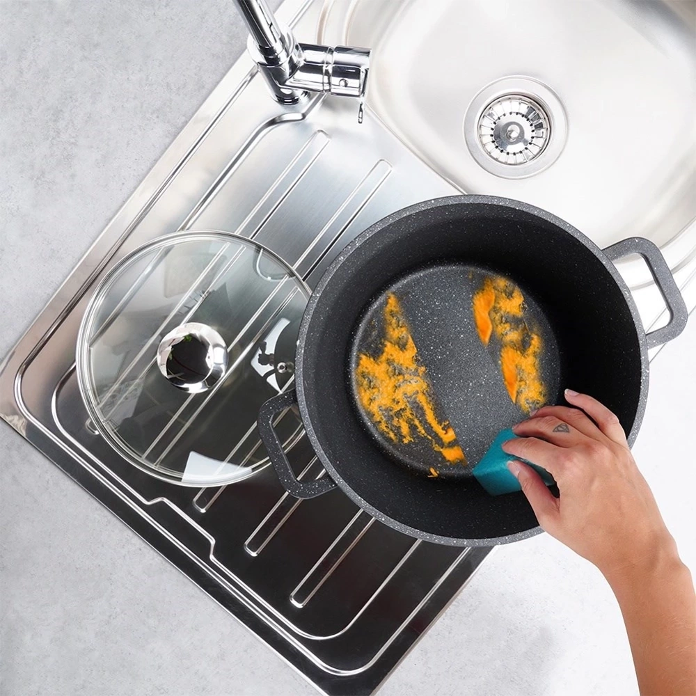 - UNIWERSALNY - Przystosowany do kuchenek gazowych, elektrycznych, ceramicznych, halogenowych oraz indukcji. Nadaje się do piekarnika, pokrywa odporna na temperatury do 200°C. Nadaje się do mycia w zmywarce do naczyń.