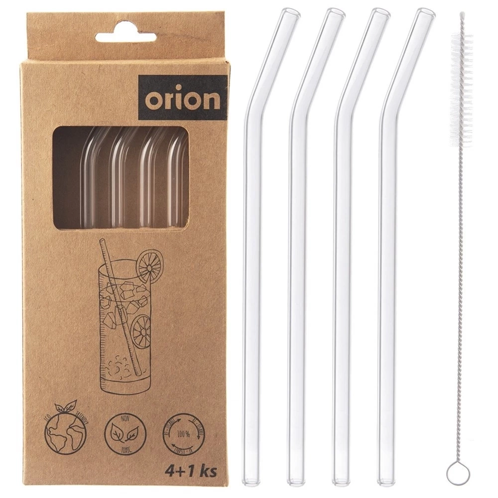 Zestaw czterech słomek wraz z czyścikiem. Świetnie się sprawdzą zarówno w domu, jak i w gastronomii, a czyścik pozwoli w łatwy sposób utrzymać słomki w czystości. Idealne do wody, koktajli, lemoniady, kawy, mrożonej herbaty, cappuccino itp. Szklane słomki mają odpowiednią grubość, więc nie musisz się martwić o ich stłuczenie. Oryginalny produkt czeskiej marki Orion. Wyprodukowano zgodnie z europejskimi standardami.