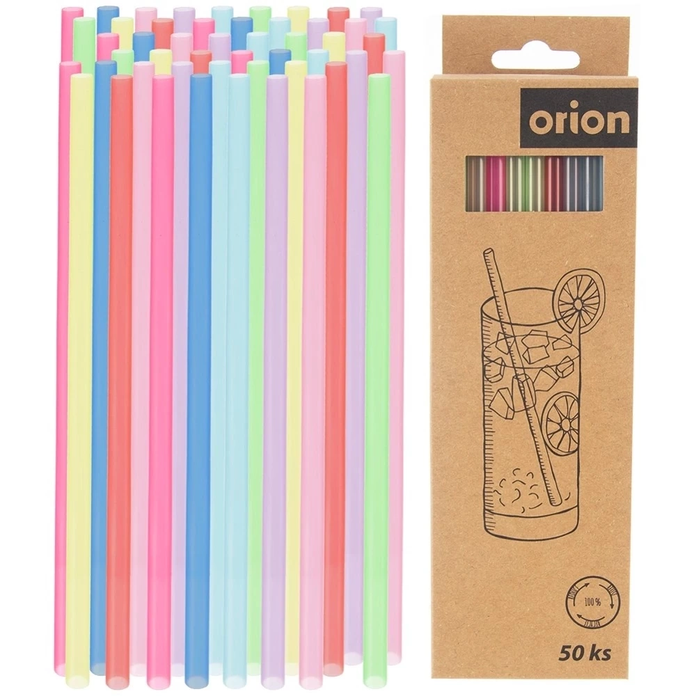 Zestaw 50 słomek wielokrotnego użytku. Przydatne w każdym domu. Idealne i niezbędne na pikniki, spotkania ze znajomymi, imprezy towarzyskie czy też przyjęcia dla dzieci. Kolorowe słomki prezentują się bardzo efektownie. Oryginalny produkt czeskiej marki Orion. Wyprodukowano zgodnie z europejskimi standardami.