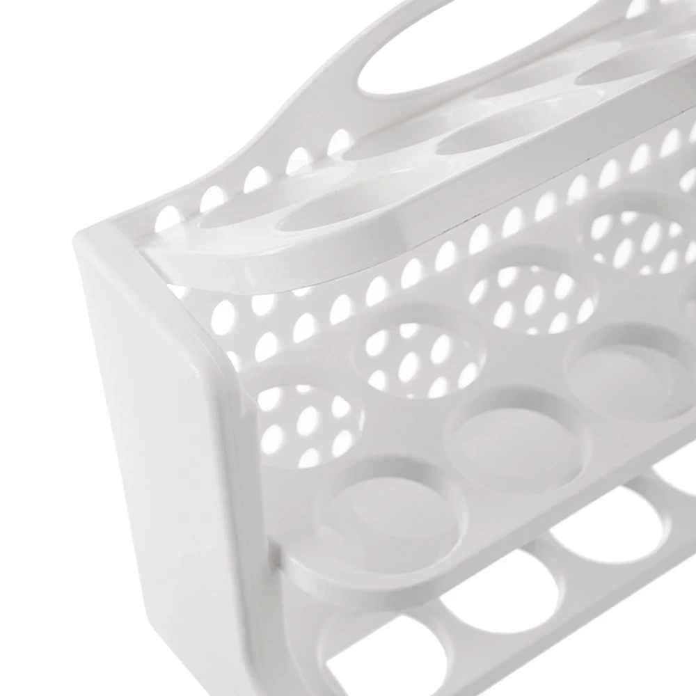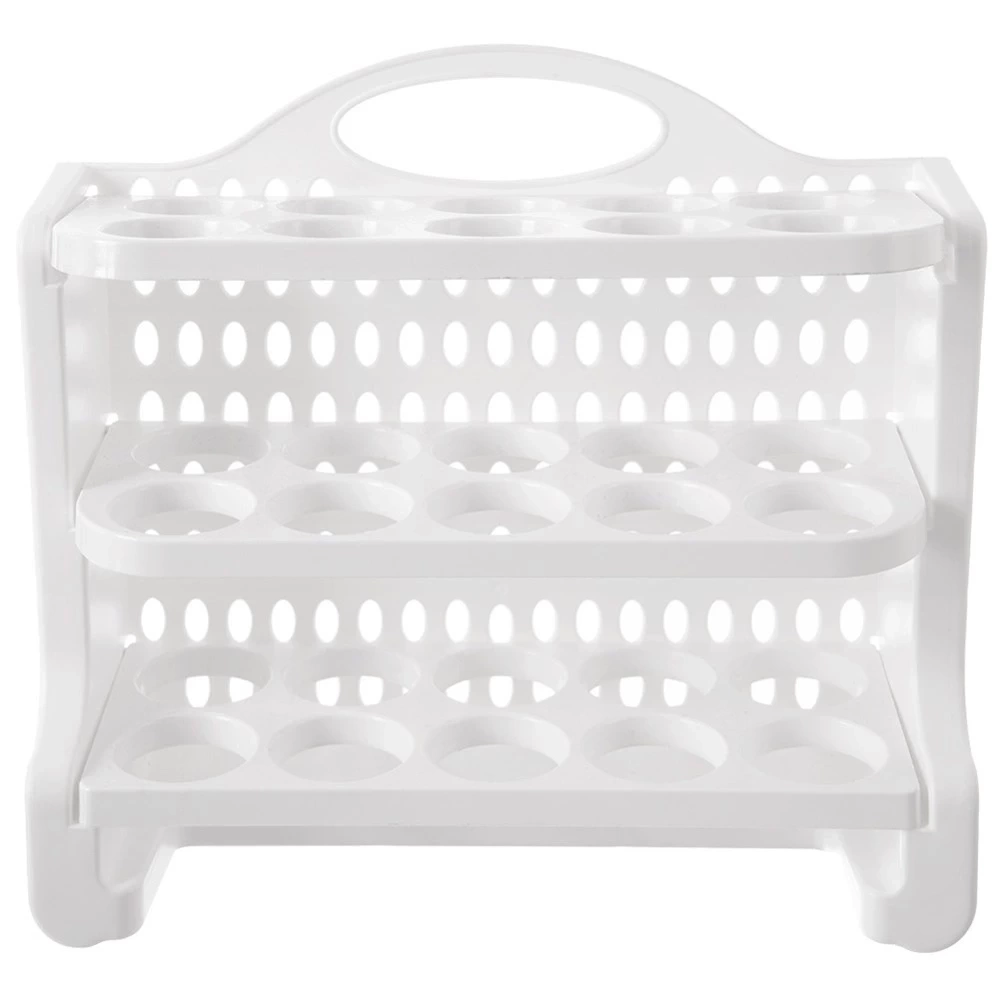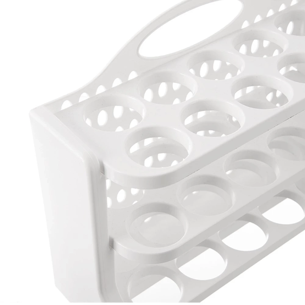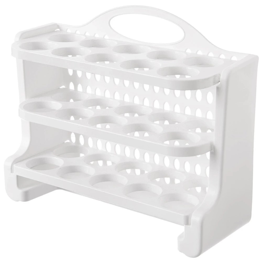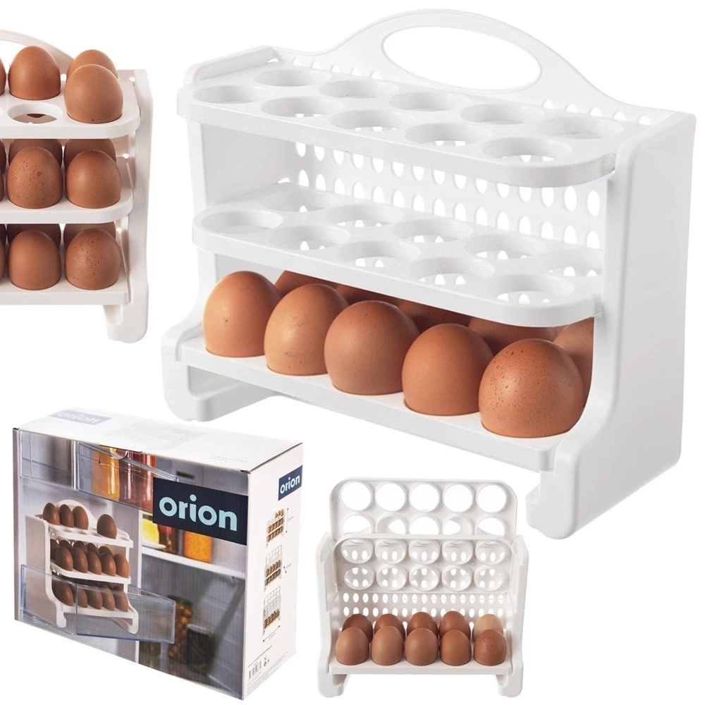 - Organizer do przechowywania 30 jajek w lodówce na trzech różnych poziomach. Wykonany z tworzywa w białym kolorze. Możliwość umieszczenia go na drzwiach lodówki.