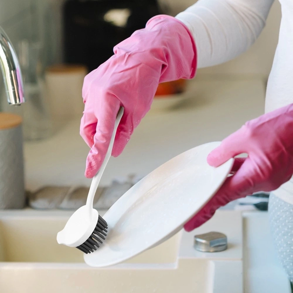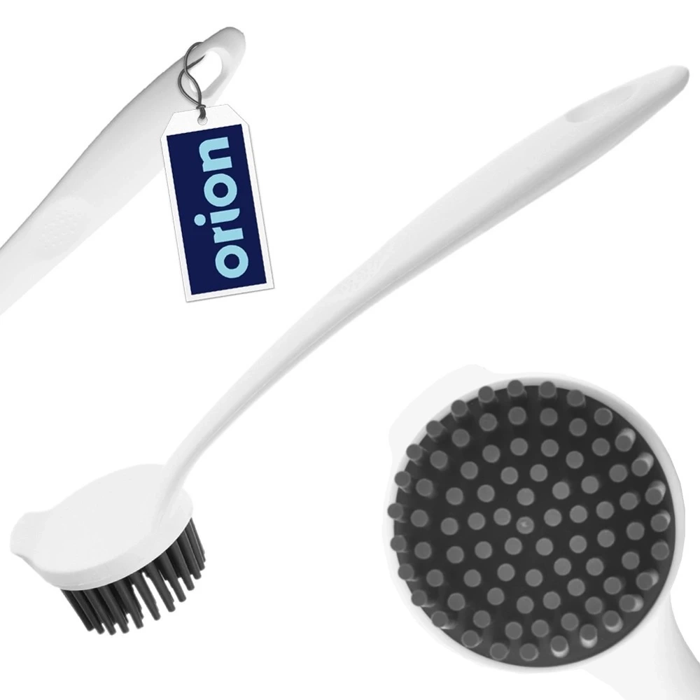 - Praktyczna szczotka kuchenna do mycia naczyń i przyborów kuchennych. Wykonana z tworzywa w kolorze białym a włosie szczotki z silikonu w szarym kolorze.