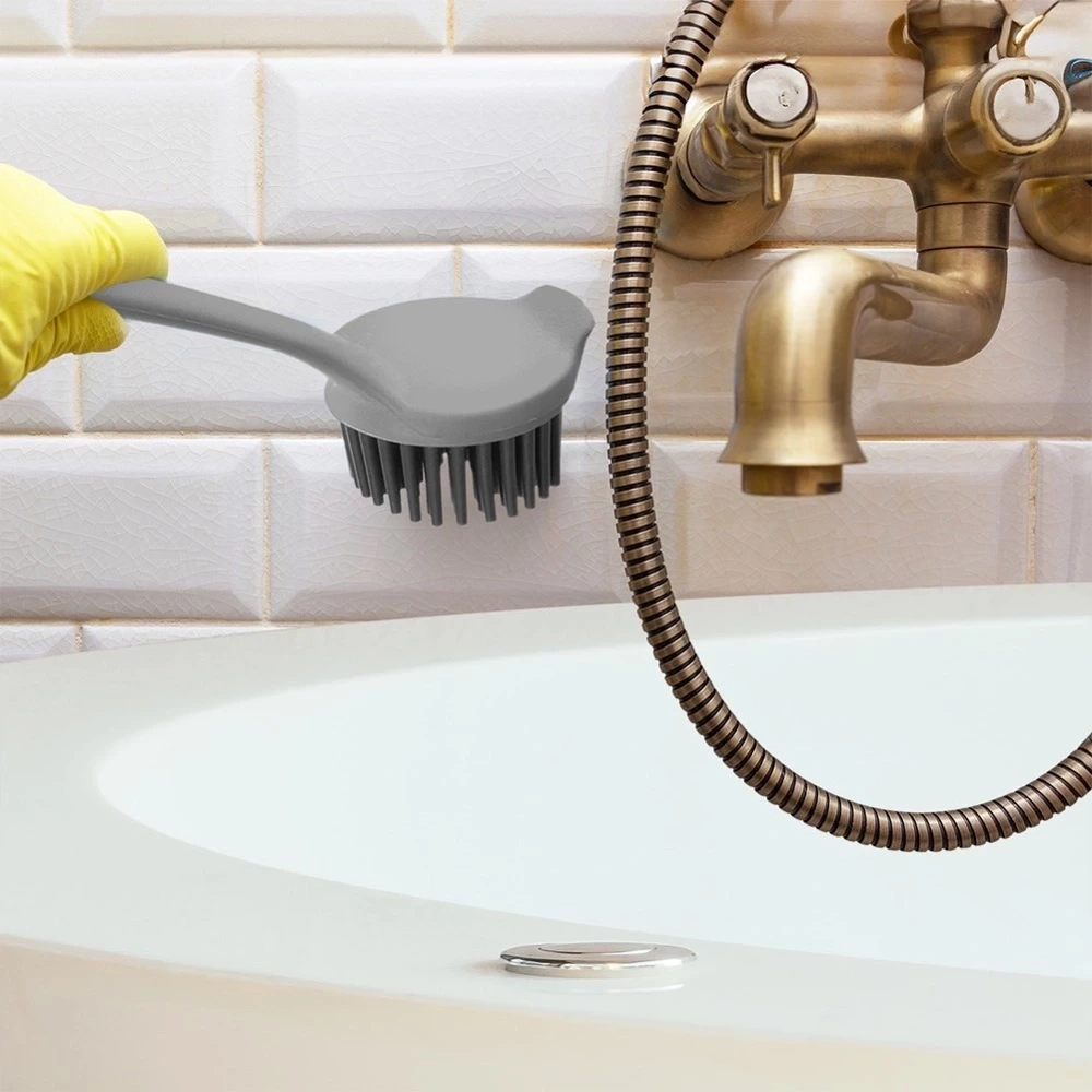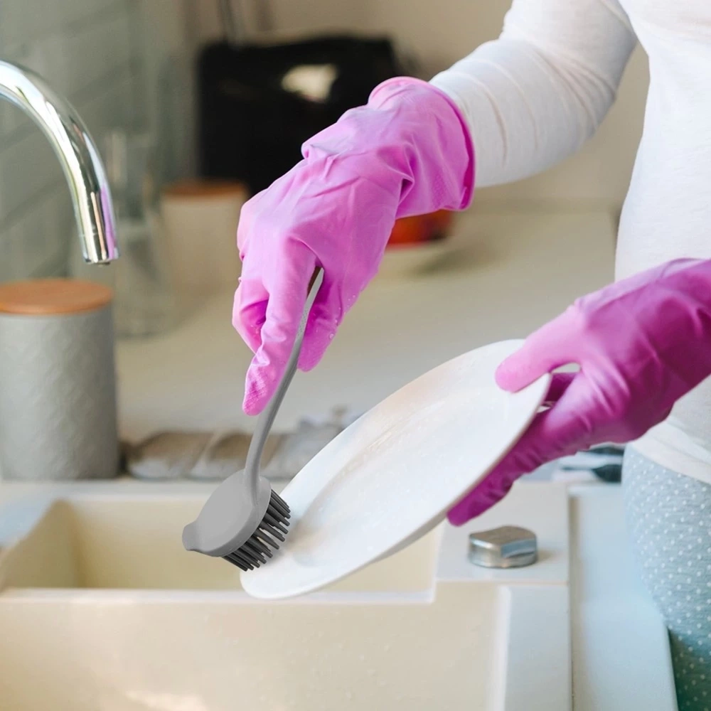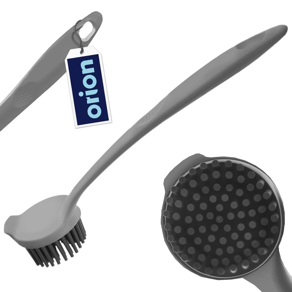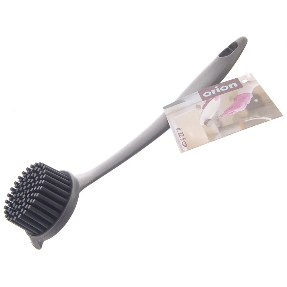 - Praktyczna szczotka kuchenna do mycia naczyń i przyborów kuchennych. Wykonana z tworzywa a włosie szczotki z silikonu w szarym kolorze.