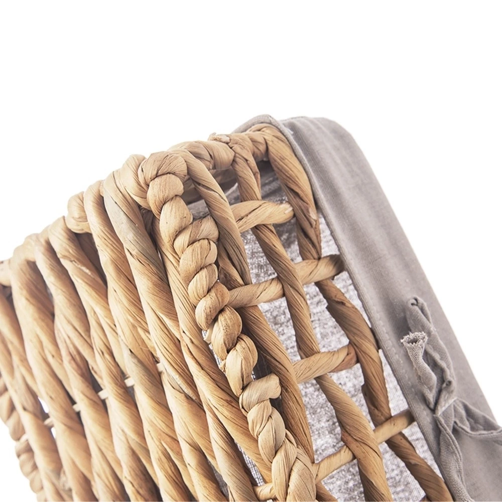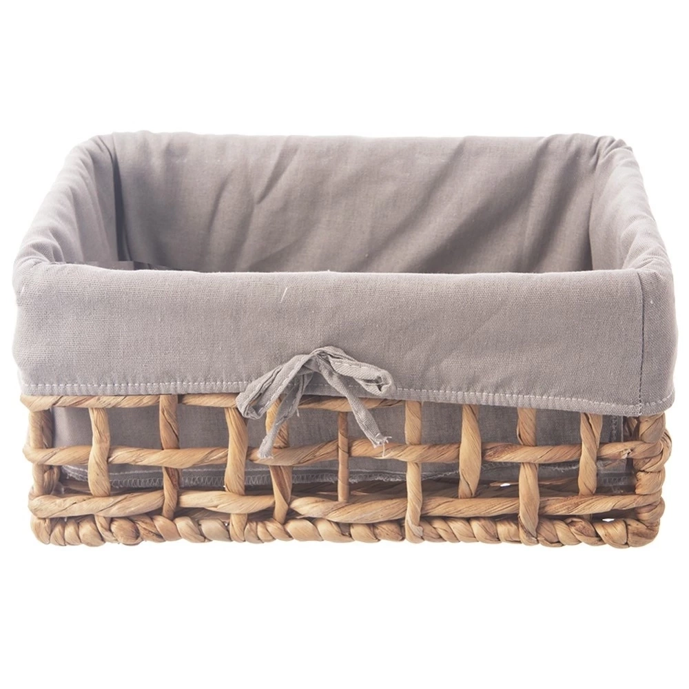 - RĘCZNIE ROBIONY - Koszyk do przechowywania o wymiarach 30,5 x 20,5 x 15 cm. Wykonany ręcznie z zaplecionego hiacyntu wodnego na metalowej konstrukcji. Kosz posiada materiałową wyściółkę w modnym, szarym kolorze.