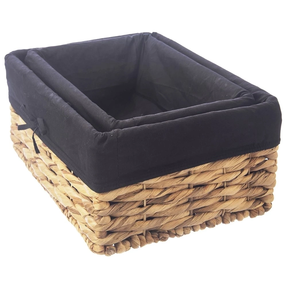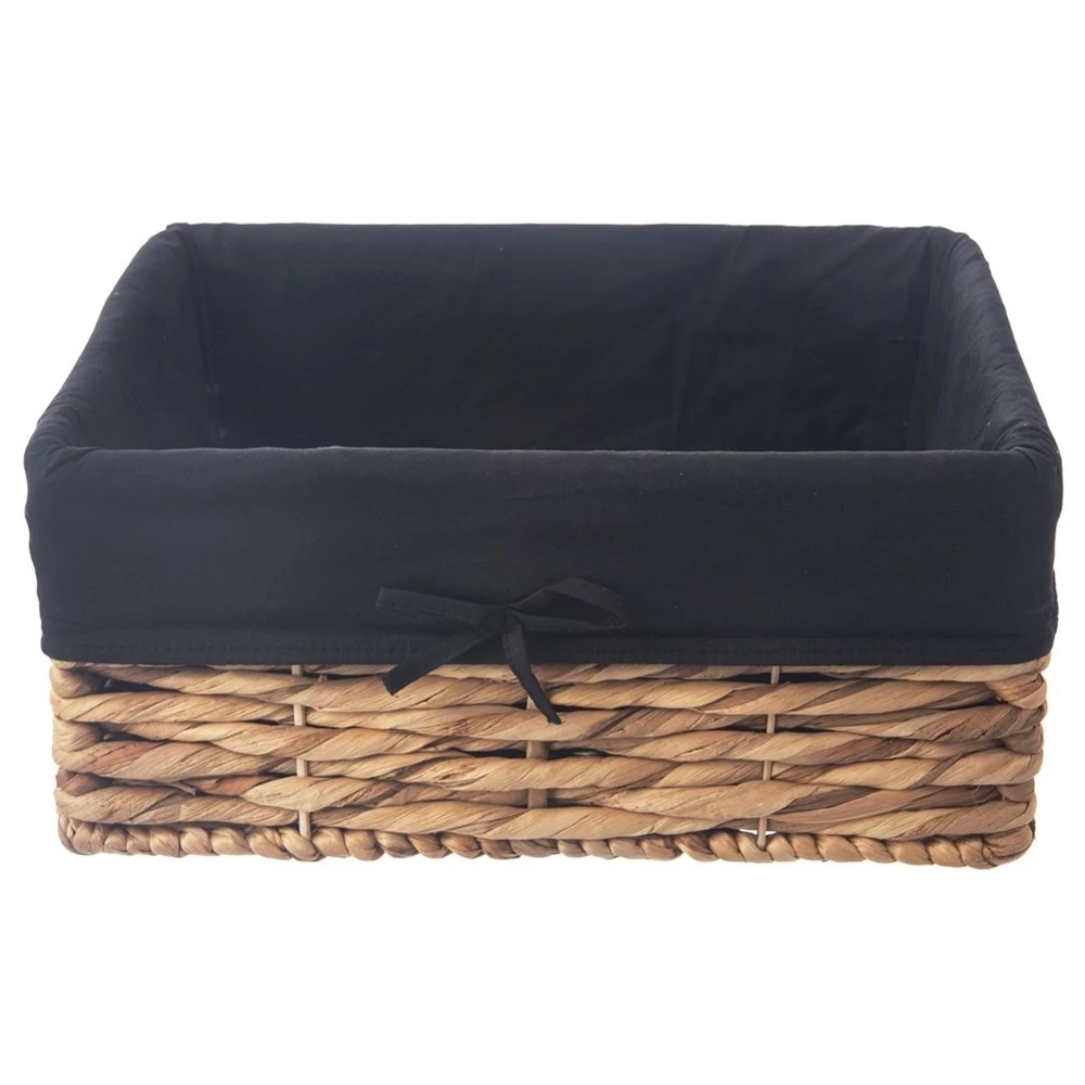 - RĘCZNIE ROBIONY - Koszyk do przechowywania o wymiarach 36,5 x 25 x 15,5 cm. Wykonany ręcznie z zaplecionego hiacyntu wodnego na metalowej konstrukcji. Kosz posiada materiałową wyściółkę w modnym, czarnym kolorze.