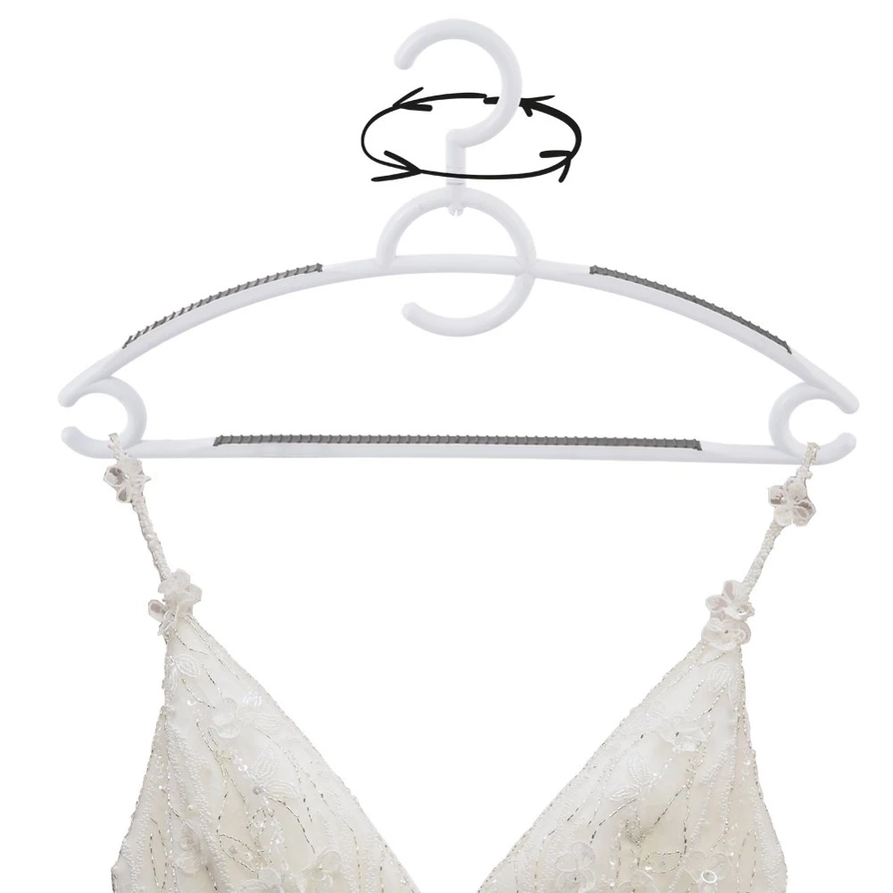 - Zestaw czterech obrotowych wieszaków na ubrania. Posiadają antypoślizgową powierzchnię, która zapobiegnie zsuwaniu się ubrań z wieszaka.