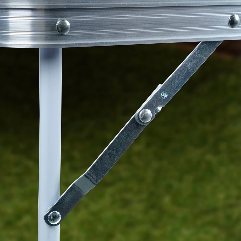 - Kempingowy, składany stół będzie przydatny podczas wyjazdów lub na działce. Stolik po złożeniu zajmuje mało miejsca. Odporny na warunki atmosferyczne. Usadowiony na metalowych nogach.