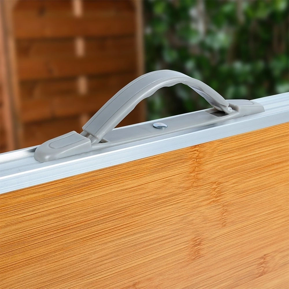 - SKŁADANY - Stolik jest wygodny podczas transportu, po złożeniu zajmuje bardzo mało miejsca. Wymiary po złożeniu 80 x 60 x 3,5 cm. Stolik składa się w łatwy sposób, a po złożeniu posiada wygodny uchwyt, który ułatwi przenoszenie go. Pod spodem blatu mamy dedykowane miejsce do przechowywania nóg stołu.